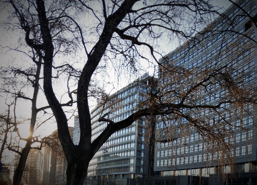 Gdy wracałam z poprzedniej pracy, to jak autobus zatrzymywał się na przystanku Uniwersytet Medyczny, zawsze wsiadało dużo młodych ludzi i można było sobie posłuchać o żyłach, sercach i wątrobach. Obok uniwersytetu znajduje się Centralny Szpital Kliniczny, którego o dziwno nie odwiedziłam nigdy, bo jest jednym z nielicznych warszawskich szpitali, w których moja rodzicielka nie leżała. No i oby tak zostało. (Najbliższy szpital – Madalińskiego /luty/). Dzisiaj jednak nie szpitale poszłam fotografować, ale zimę, która przyszła i nie odpuszcza, a ja ją widzę głównie z okna domu lub pracy. Tymczasem dzieciaki na górce przed blokiem szaleją (też kiedyś na niej szalałam).
