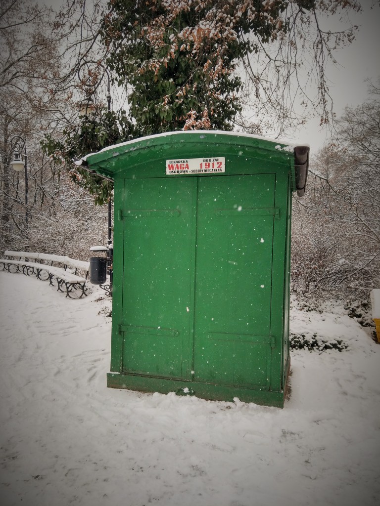 W środku siadało się na wagowym krzesełku, a starszy pan, wagowy, ważył delikwenta. Kosztowało to parę złotych zdaje się. Nie wiem, czy latem nadal jest czynna, w zimie nie działa, i dobrze, bo po co miałabym sobie psuć humor. Od tego siedzenia w domu tu i tam znów mi przybyło.
