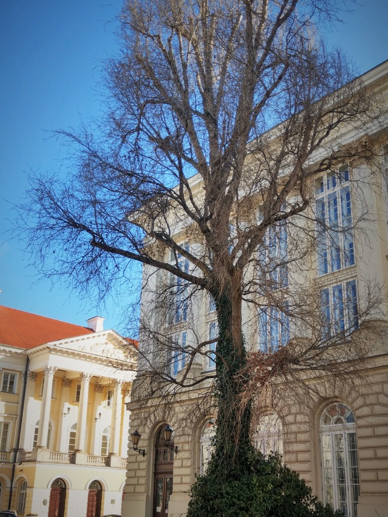 Kolejny spacer „przy okazji”. Załatwiałam bowiem dzisiaj Sprawę na terenie kampusu najważniejszej warszawskiej uczelni. Nic nie załatwiwszy (epidemia – żeby wejść do budynku, trzeba się najpierw umówić telefonicznie z lekarzem – jak rozumiem, tutejsi pracownicy należą do tych 5% jeszcze niezaszczepionych…), udałam się na obchód terenu. Nie znam go bowiem zbyt dobrze, gdyż UW nie jest moją Alma Mater.