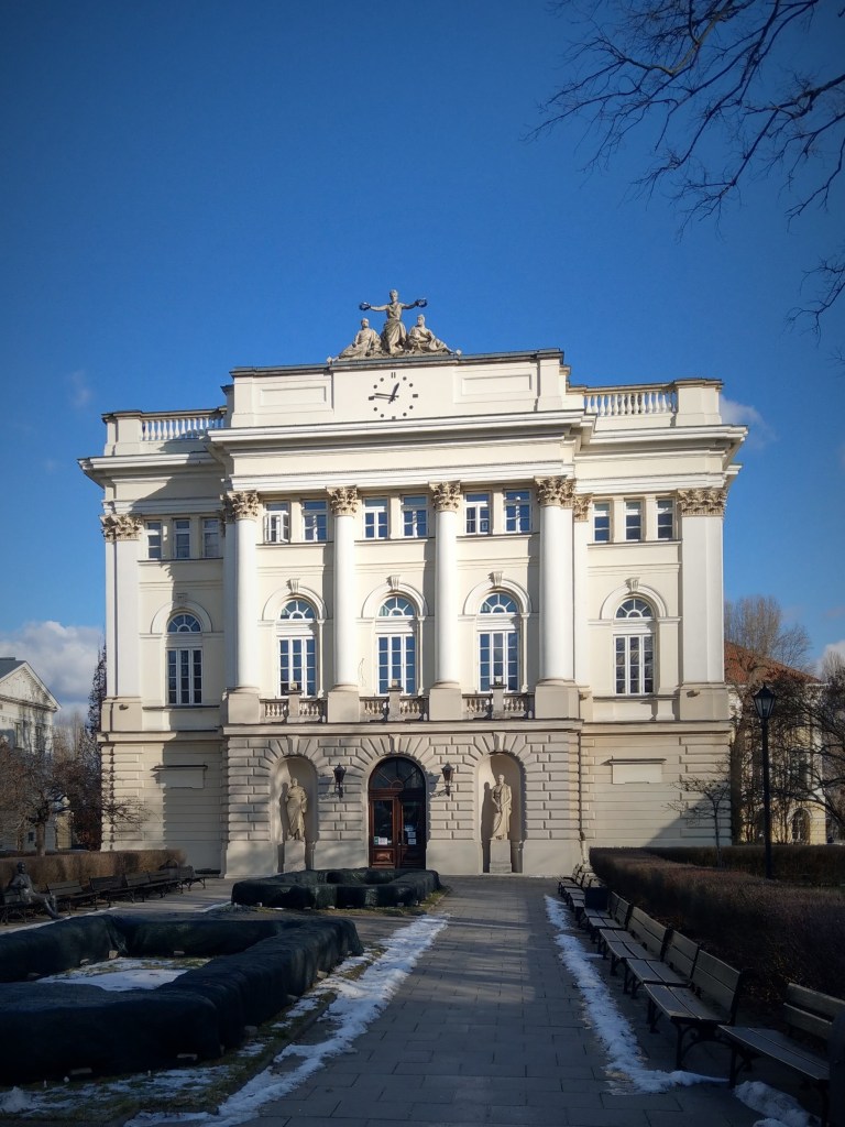 W tym budynku mieściła się dawniej uniwersytecka biblioteka. Ale zrobił się dla niej za mały i obecnie student musi drałować Oboźną w dół na Powiśle do nowego BUW-u (tego z ogrodem na dachu).