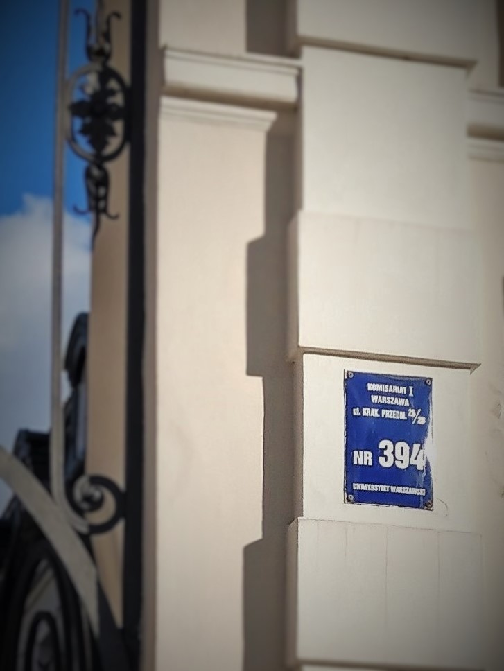 Studenta przybywającego na Krakowskie Przedmieście wita zabytkowa tabliczka z adresem – uniwerek znajdował się kiedyś w Komisariacie I Warszawa.