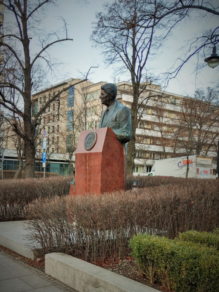 Trochę jakby nam Amerykanie przed ambasadą w Waszyngtonie postawili Lecha Kaczyńskiego. Ambasador obecnej ekipy byłby pewnie uradowany, ale jakiś inny już niekoniecznie. A amerykański ambasador, republikanin czy nie, musi z okna gabinetu patrzeć na Reagana (wiem, że patrzy, bo byłam:)).