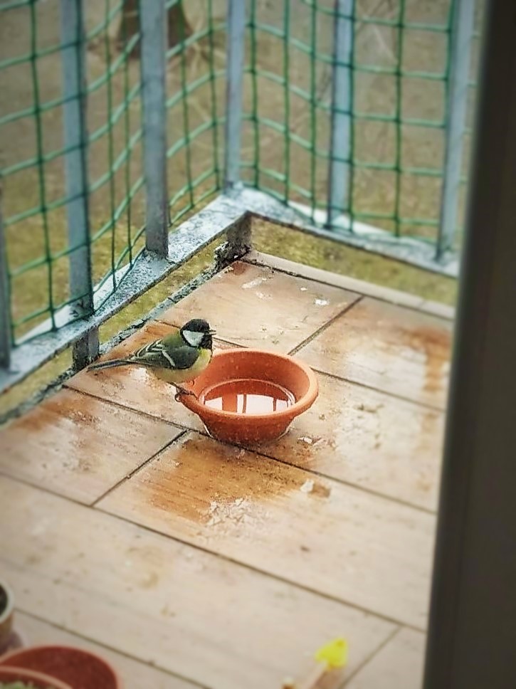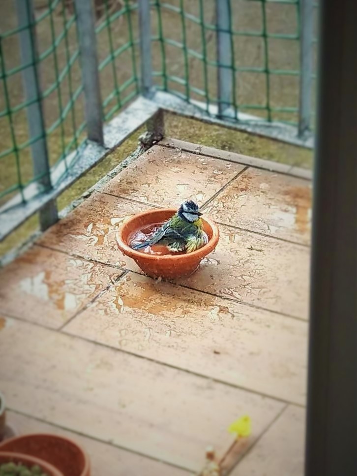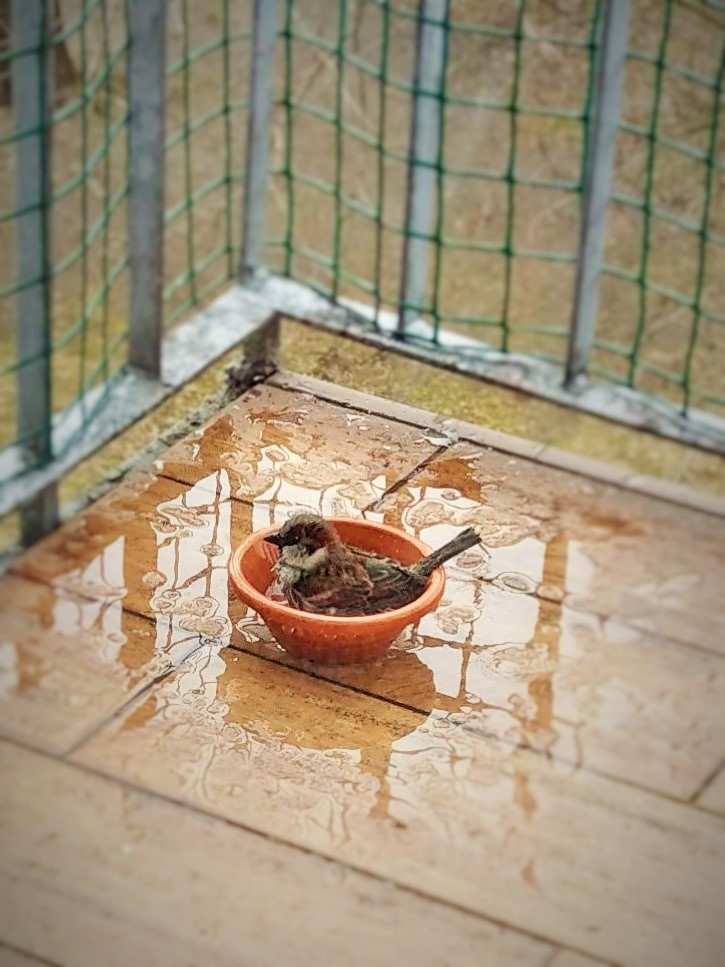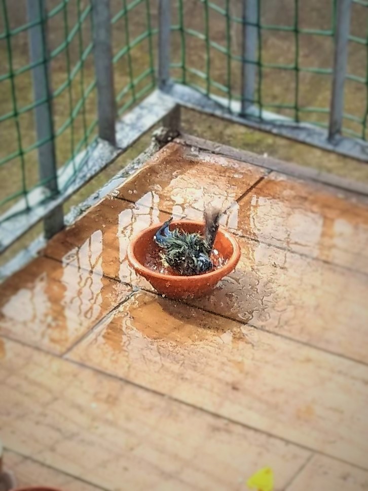 Zrobiło się cieplej, więc poidełko zaczęło służyć także za wanienkę.