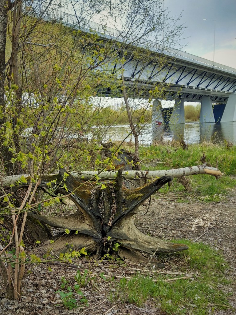 Zachęcona ubiegłotygodniowym spacerem postanowiłam wyciągnąć przyjaciela na dłuższą wycieczkę nad Wisłę. Początkowo mieliśmy zamiar przemaszerować praskim, bardziej – w naszym mniemaniu – dzikim brzegiem, ale po przybyciu na miejsce, w okolice Mostu Gdańskiego, szybko przekonaliśmy się, że dziko to tu może było, ale -naście lub -dziesiąt lat temu. Wróciliśmy więc na lewy brzeg i ruszyliśmy w trasę ścieżką rekreacyjną na żoliborskim odcinku Wisły od plaży Żoliborz do mostu Grota-Roweckiego. Tu było znacznie ciekawiej.