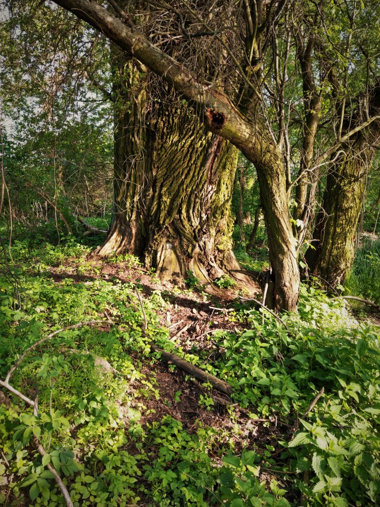 Wśród okolicznych drzew (tych, których nie ścięły bobry), rozpanoszył się bluszczyk kurdybanek.