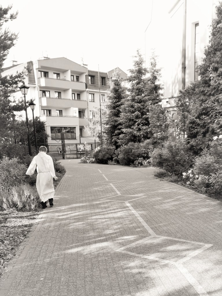 Wyszłam sprawdzić, czy świat jeszcze istnieje. Istnieje, jakby nigdy nic. Wybrałam się więc, podśpiewując „Prząśniczkę” Moniuszki, na osiedle Wrzeciono, wybudowane w latach 60-tych dla hutników z pobliskiej huty, by się po nim pokręcić. A można się tu kręcić w kółko i dosyć łatwo zgubić, bowiem od czasów PRL-u przybyło tu trochę płotów, zagradzających w niespodziewanych miejscach osiedlowe chodniki i przejścia. Jakaś miła pani zawołała nawet za mną w którymś momencie, bym zawróciła, bo „tam jest zagrodzone – a gdzie pani chce dojść?”. (Hmm, właściwie to donikąd, proszę pani…). „Do kościoła”. „A, to w tamtą stronę!”. „Dziękuję!”.