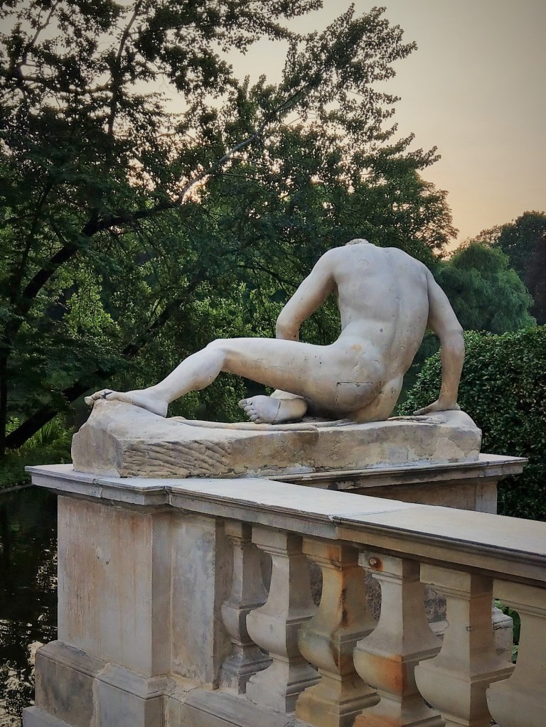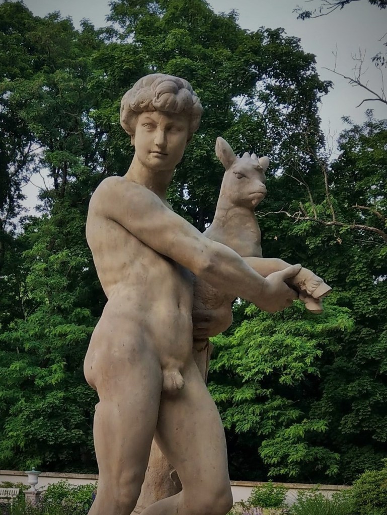 Jedna z rzeźb w ogrodzie holenderskim przed Starą Pomarańczarnią („Faun z koźlęciem”).