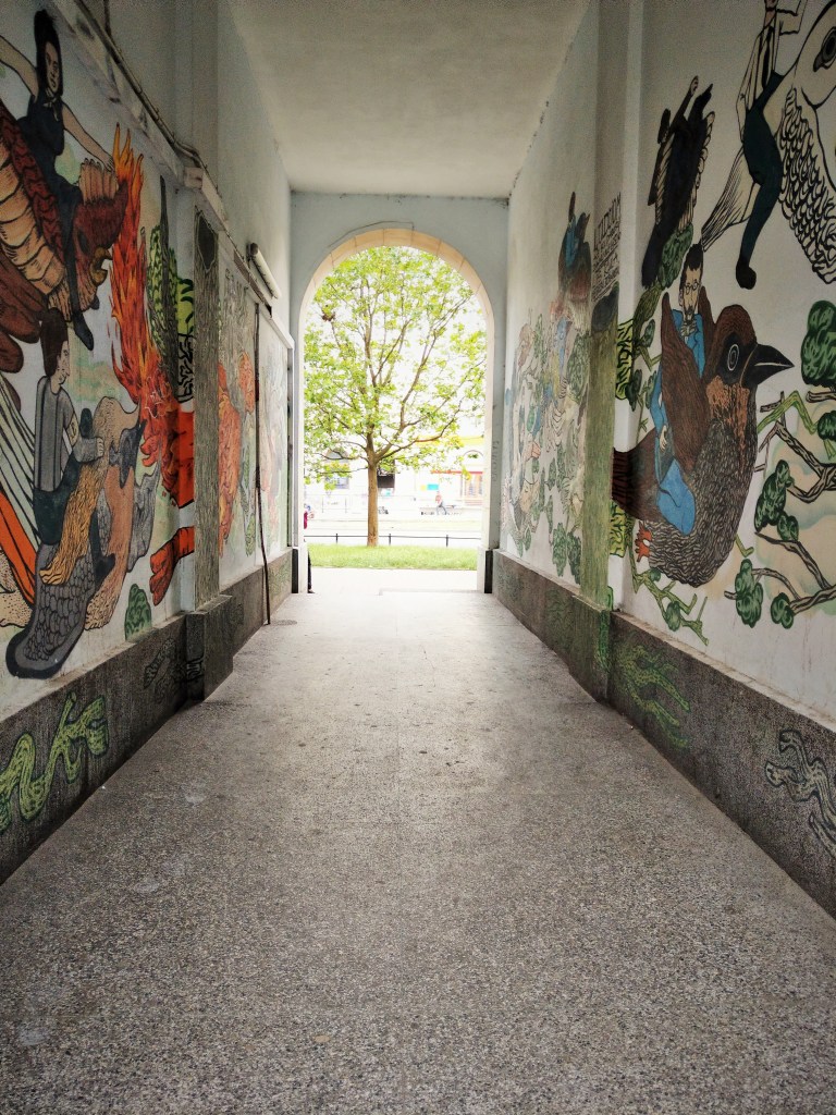 Dzisiaj odbywały się chyba jakieś przesłuchania, z okien dobywały się głośne śpiewy, a przed budynkiem na ławeczkach siedziało sporo osób.