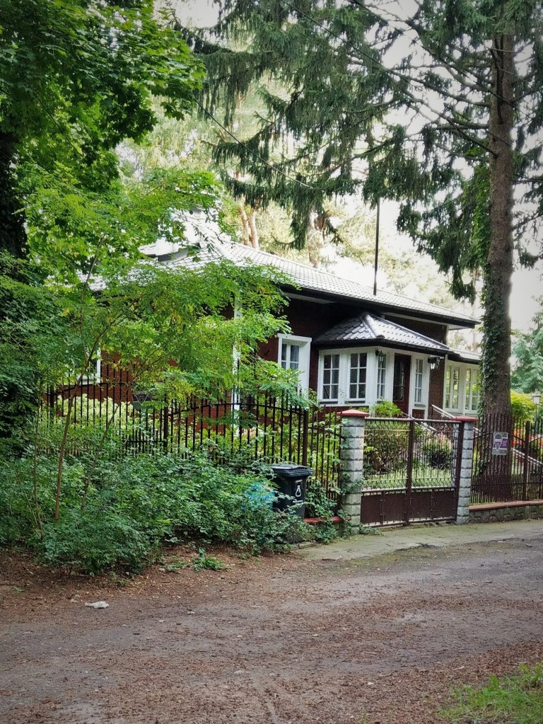 Czyli Stare Bemowo. Powstałe w latach 20-tych jako Osiedle Łączności dla pracowników Transatlantyckiej Centrali Radiotelegraficznej wybudowanej w pobliskim lesie. Samo osiedle jest również zalesione i składa się w dużej części z drewnianych domów, w większości bardzo dobrze utrzymanych. Cisza tu i spokój, zupełnie nie czuje się obecności w pobliżu wielkich bemowskich blokowisk. Czuje się za to obecność lotniska Bemowo, bo zaraz za płotem startują i lądują małe samoloty. Ale ruch nie jest duży. W głąb osiedla dojeżdża tramwaj – co rzadkie – jednotorową linią.