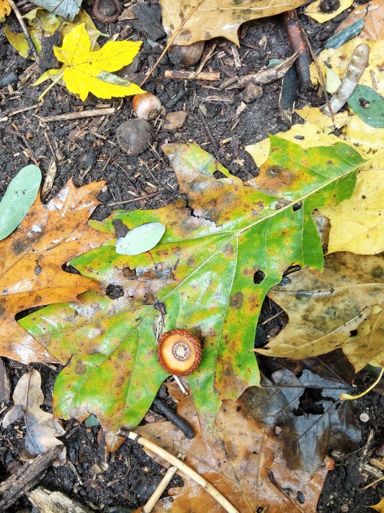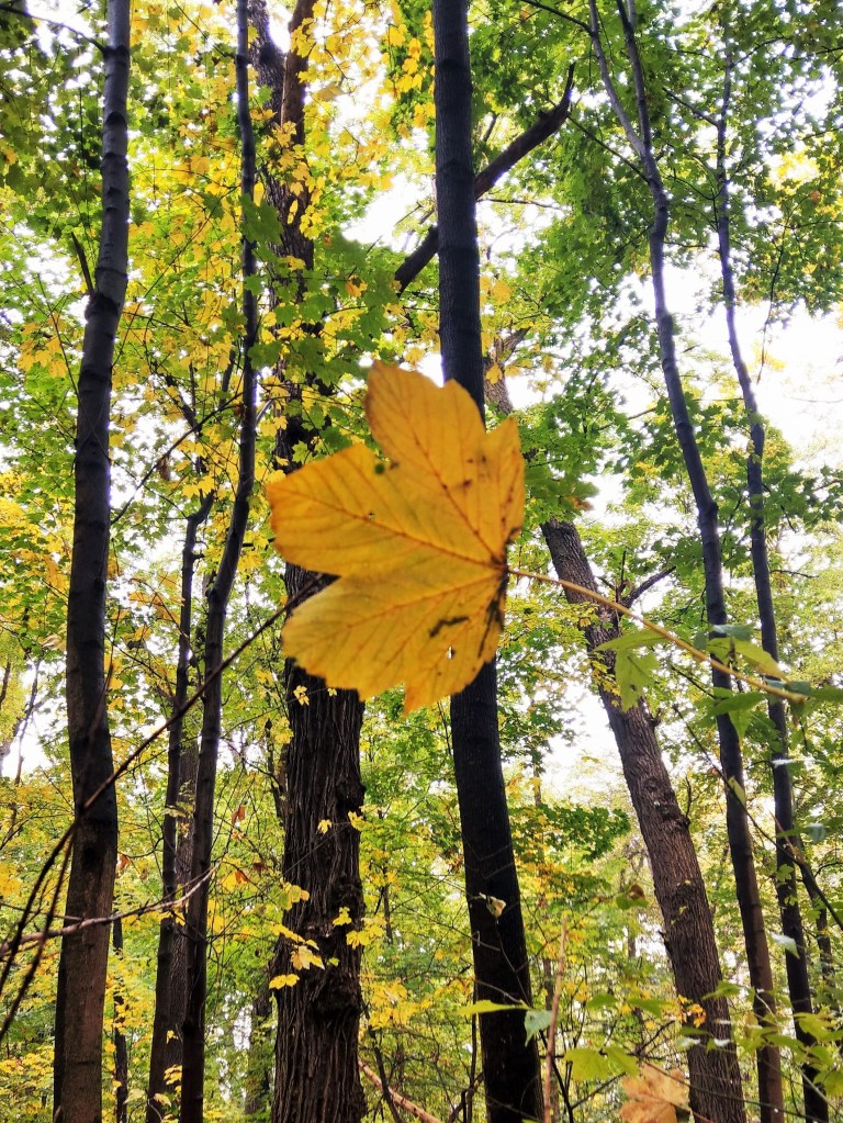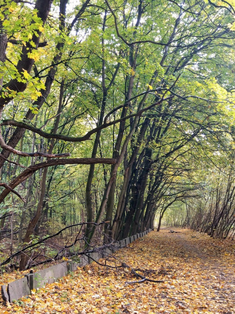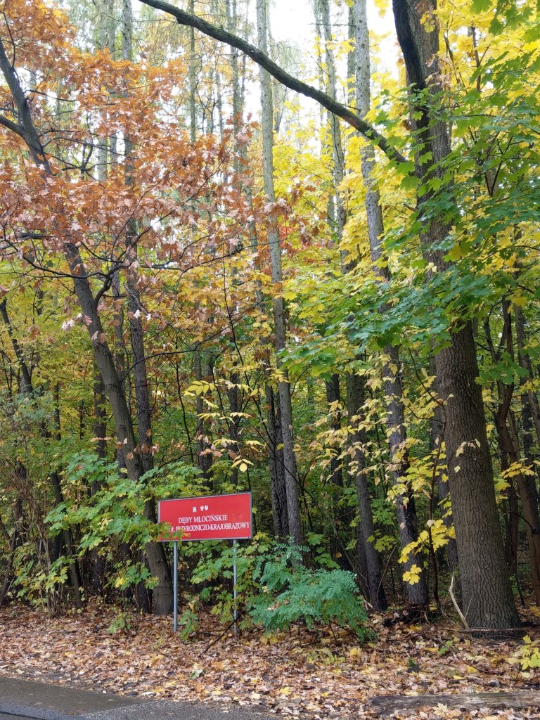 W okolicach Zespołu Przyrodniczo-Krajobrazowego „Dęby Młocińskie” byłam już w lipcu, ale wtedy tylko przeszłam wzdłuż ciemnozielonej, gęstej ściany. Zanurzenie się w głąb zostawiłam na jesień, bo spacery po lesie jesienią są najpiękniejsze. Zwłaszcza po dłuższej spacerowej przerwie. Zwłaszcza po poranku spędzonym na dłubaniu przez okulistę w oku. I zwłaszcza po dwóch tygodniach ostrego zapieprzu w pracy.