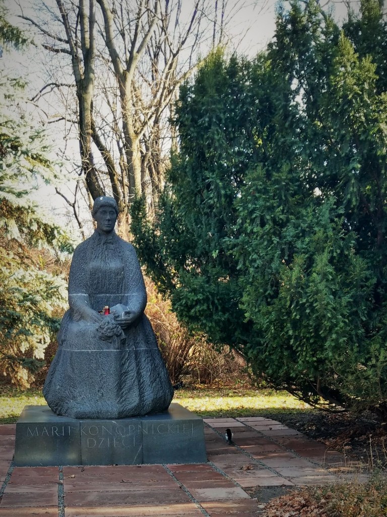 Maria Konopnicka przycupnęła skromnie pod krzakiem. Pilnuje jej tylko sroka.