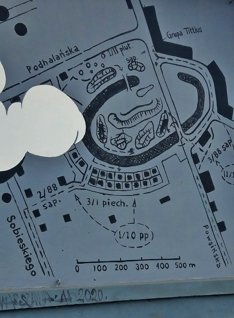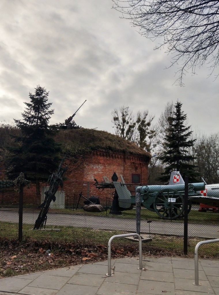 Śródmiejskie ulice i ich zgiełk zmęczyły mnie nieco, odhaczyłam więc dzisiaj kolejny „broch”, czyli twierdzę, a konkretnie fort tejże twierdzy, Twierdzy Warszawa, pozostawionej warszawiakom w spadku przez Rosjan. Fort Czerniaków leży oczywiście na Sadybie, nie na Czerniakowie, ale takie niekonsekwencje nazewnicze to w stolicy normalka. Miejsce, mimo że większość jego zabudowań została zlikwidowana, żyje – mieści się w nim Muzeum Techniki Wojskowej, w dużej części plenerowe. W czasie kampanii wrześniowej toczyły się tu walki, w których brał udział (i został ranny) m.in. Janusz Kusociński, pięć lat później bili się tu także powstańcy. Muzeum Techniki Wojskowej to chyba ostatnie muzeum, jakie miałabym ochotę zwiedzać, więc – mimo że było otwarte – ograniczyłam się do obejścia fortu i pospacerowania po dwóch położonych obok niego tzw. terenach zielonych (teraz raczej szaro-burych), czyli Parku Szczubełka i Skwerze Ormiańskim.