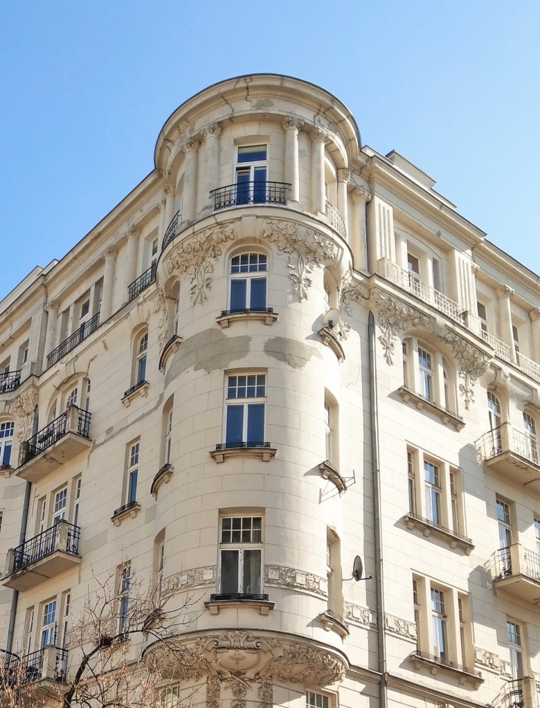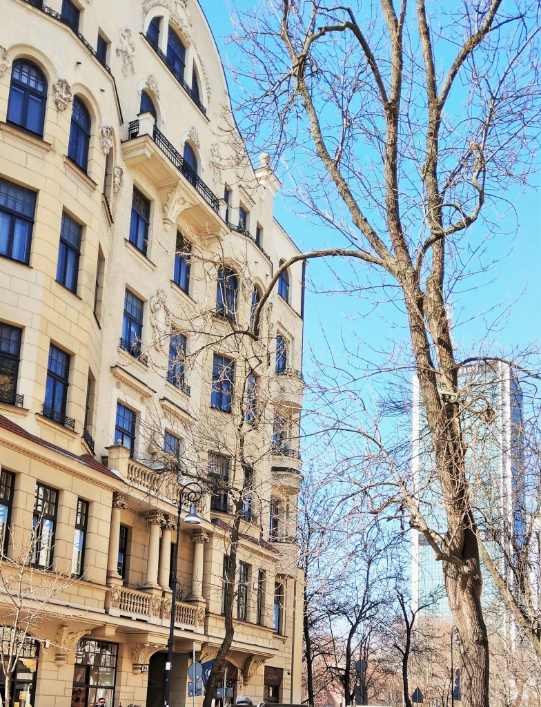 Odcinek Marszałkowskiej między Alejami Jerozolimskimi, Hożą i Chałubińskiego jest również bardzo wielkomiejski, ale widać i tu, że wojna zrobiła swoje. Stare kamienice wymieszane są z nowszymi, a gdzieniegdzie zieją dziury, zapełnione skwerami lub parkingami. Przy samej Marszałkowskiej nie ma właściwie niczego ciekawego, powiedziałabym, że jest wręcz nudno, interesujące miejsca można napotkać zapuszczając się w Nowogrodzką, Wspólną i Hożą. Zaczęłam spacer od południowego odcinka Alej Jerozolimskich, gdzie zachował się ciąg przedwojennych kamienic (duża część Alej została podczas wojny całkowicie zburzona).