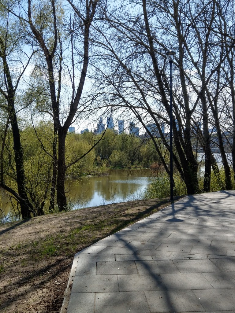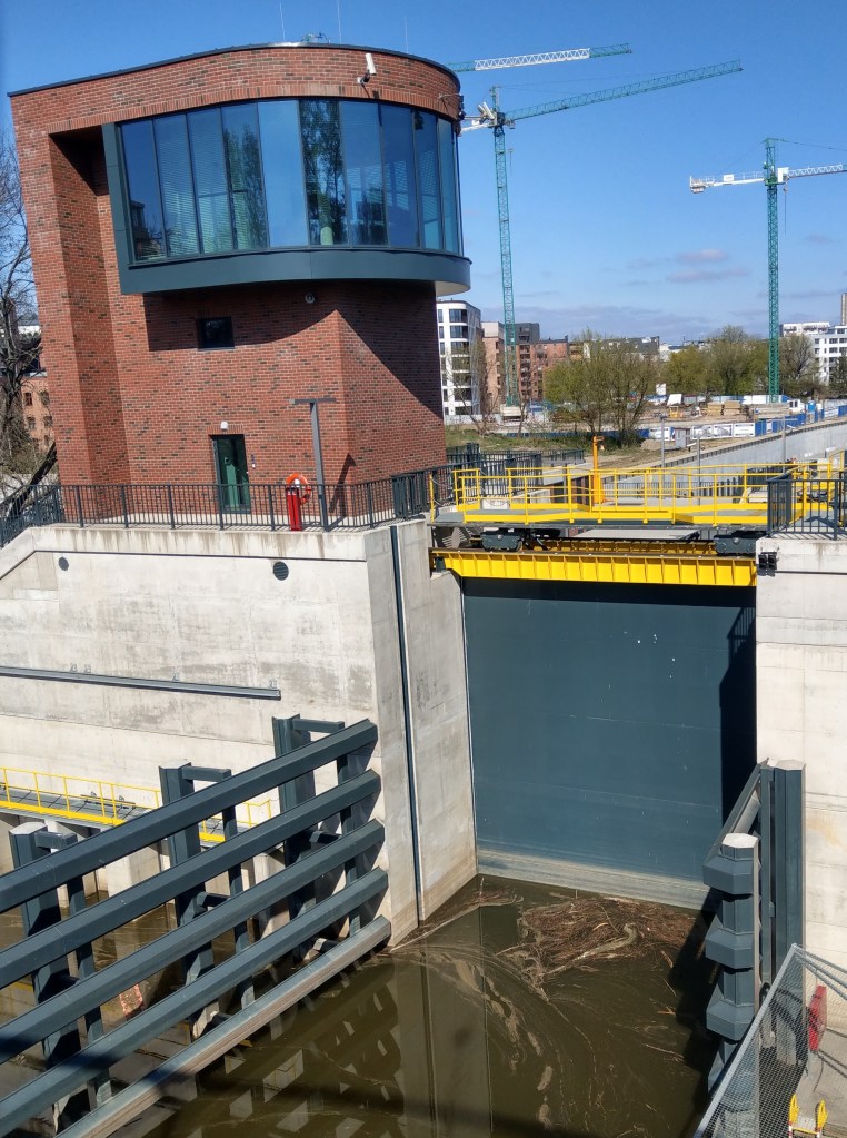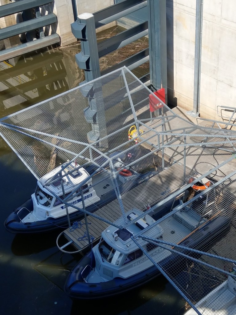 Podziwialiśmy ze świeżo otwartej kładki pieszo-rowerowej.