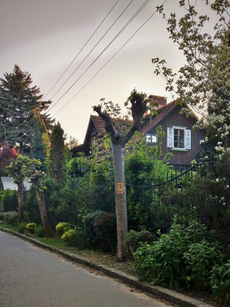 Byłam tu już we wrześniu, ale tylko w części robotniczej (wielkie chałupy rodem z kołchozu). Dzisiaj odwiedziłam część inżynierską. Inżynierowie mieszkali dużo ładniej. Drewniane domki z okiennicami stoją ciasno, ogródki są małe, ale zadbane, ogrodzone zazwyczaj niewysokimi płotkami, toną w zieleni i prawie nie ma w nich tui.
