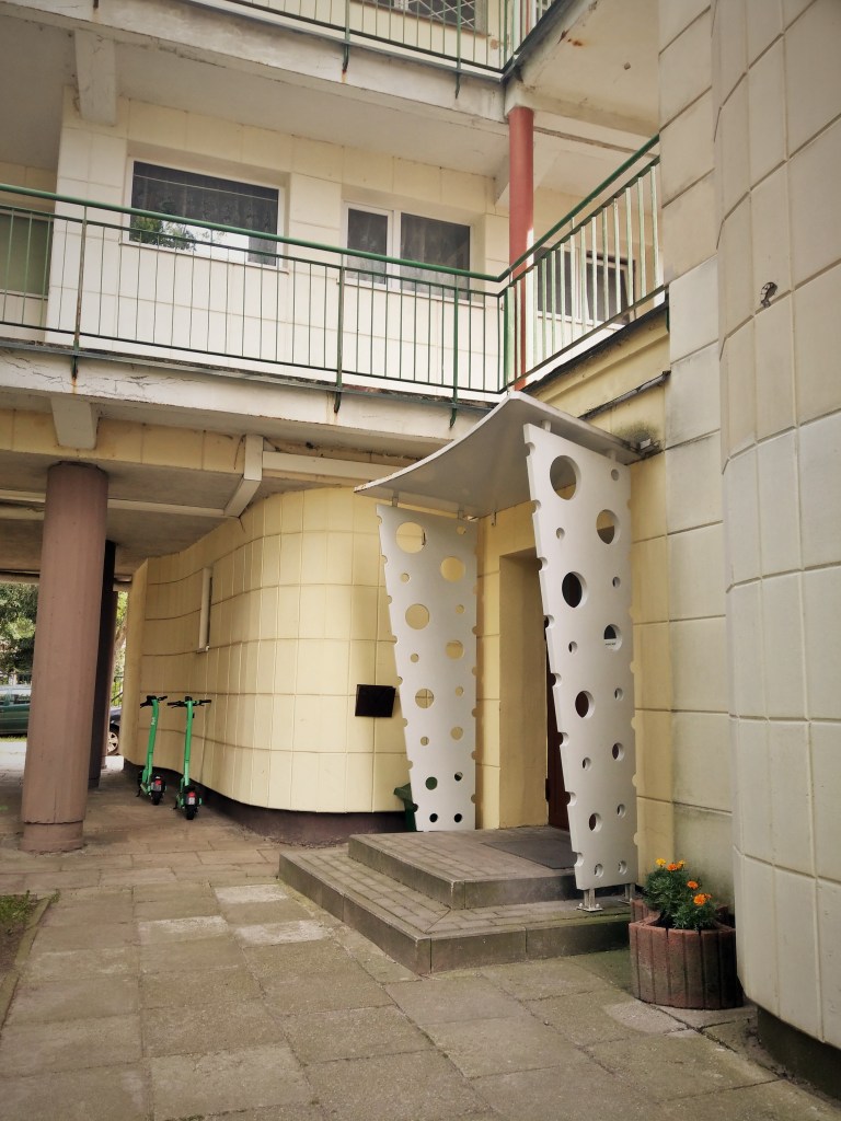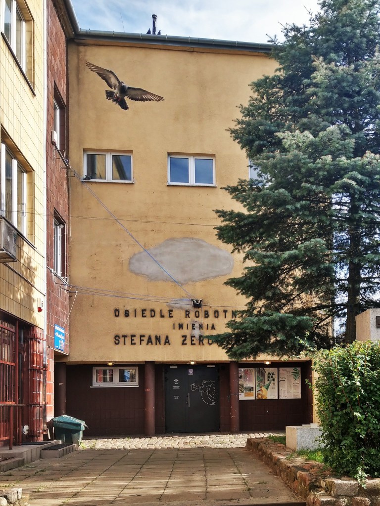 W tym budynku nietypową pamiątkę – rysunek syrenki na ścianie mieszkania – zostawił Pablo Picacco, wizytujący to osiedle w ramach Światowego Kongresu Intelektualistów w Obronie Pokoju w 1948 r. Małżeństwo, które się do mieszkania następnie wprowadziło, przez kilka lat musiało znosić niekończące się wycieczki amatorów sztuki, pragnących ujrzeć na własne oczy dzieło słynnego artysty. Już to widzę – mąż z żoną siadają do obiadu, a tu dzwonek do drzwi, za drzwiami podnieceni amatorzy, wchodzą, podziwiają, pomidorowa stygnie… W sumie nie dziwię się, że zamalowali. Szukałam tablicy upamiętniającej to wydarzenie, która podobno jest gdzieś na bloku, ale nie znalazłam. Kto ciekaw, niech sobie wygugluje „pablo picasso syrenka”.