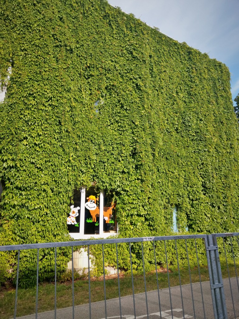 W pierwszej chwili myślałam, że gołąb jest namalowany na ścianie budynku, ale na drugim zdjęciu go nie ma, zatem jest prawdziwy.