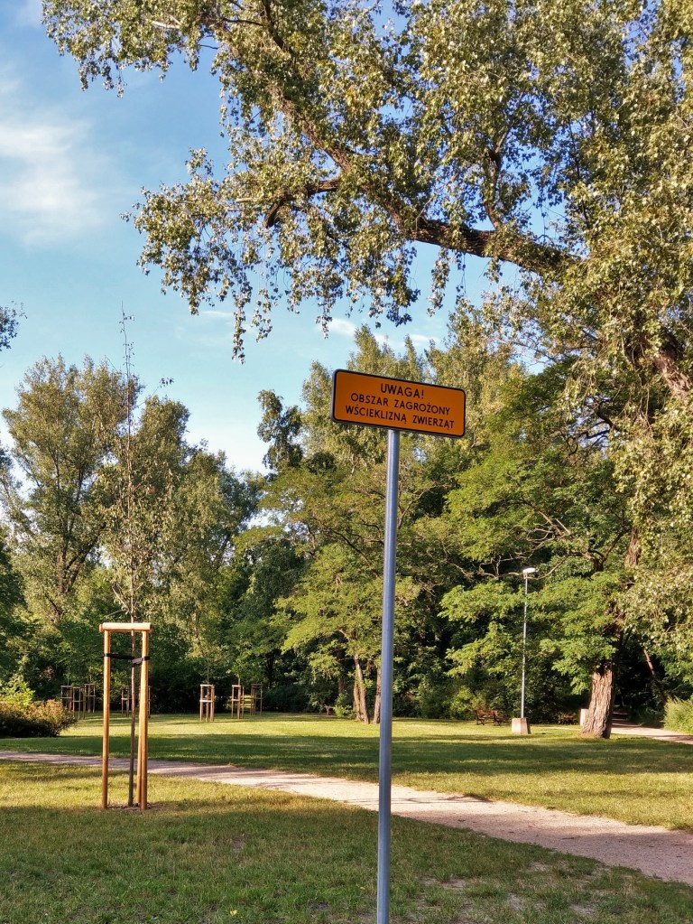Mniejszy i skromniejszy z dwóch kolskich parków (większy – Park Moczydło odwiedziłam w marcu zeszłego roku przy okazji zdobywania Korony Warszawy). W latach 30. ubiegłego wieku na tym terenie wybudowano osiedle drewnianych domów dla uboższych mieszkańców Woli, tzw. Drewniane Koło. Osiedle spalono podczas powstania warszawskiego, mieszkańców wypędzono. Pozostałościami po nim są niektóre alejki parku, biegnące śladem dawnych ulic osiedla oraz górki, usypane z pozostałości domów, głównie kominów. Park graniczy z Laskiem na Kole i nie jest zbyt tłumnie odwiedzany, głównie chyba z powodu ustawionych tam tabliczek…
