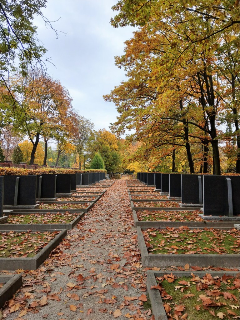 Na niewielkim Ulrychowie znajdują się trzy parki i aż pięć cmentarzy. Najpiękniej wyglądają jesienią. Odwiedziłam dzisiaj trzeci z parków i drugi z cmentarzy. Cmentarz Powstańców powstał tuż po wojnie, w 1945 r., park – w latach 60.