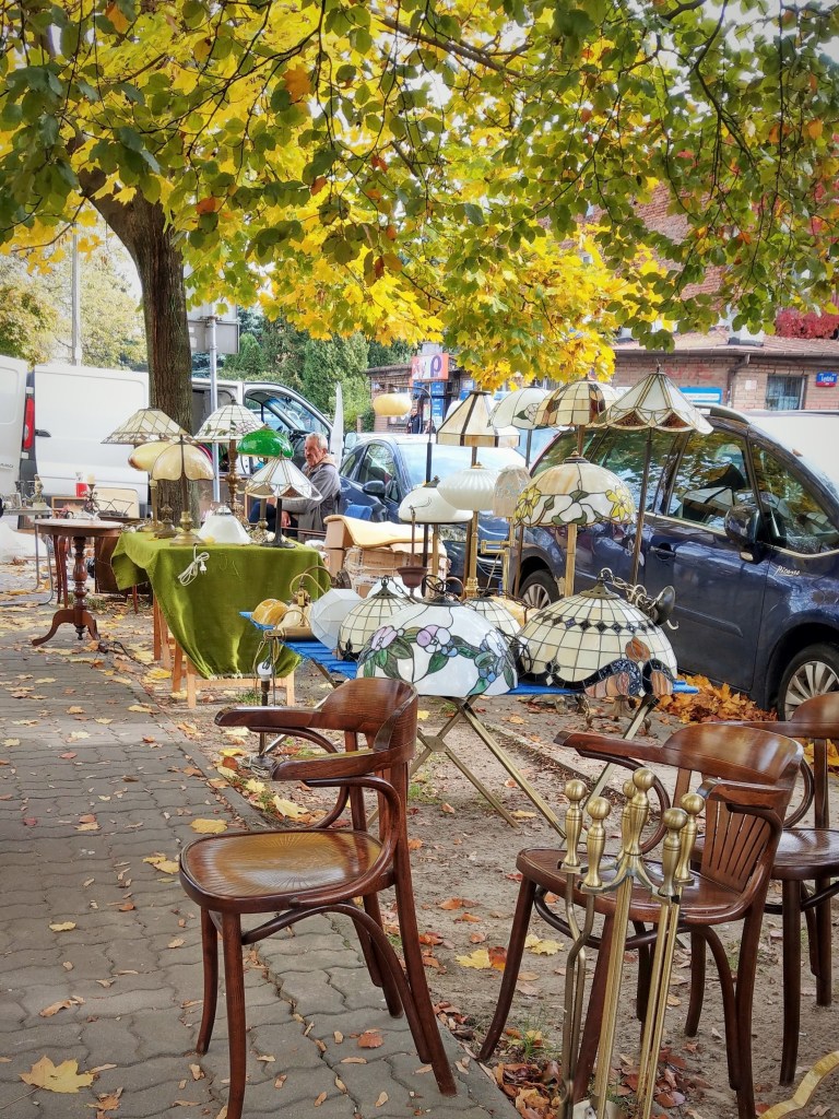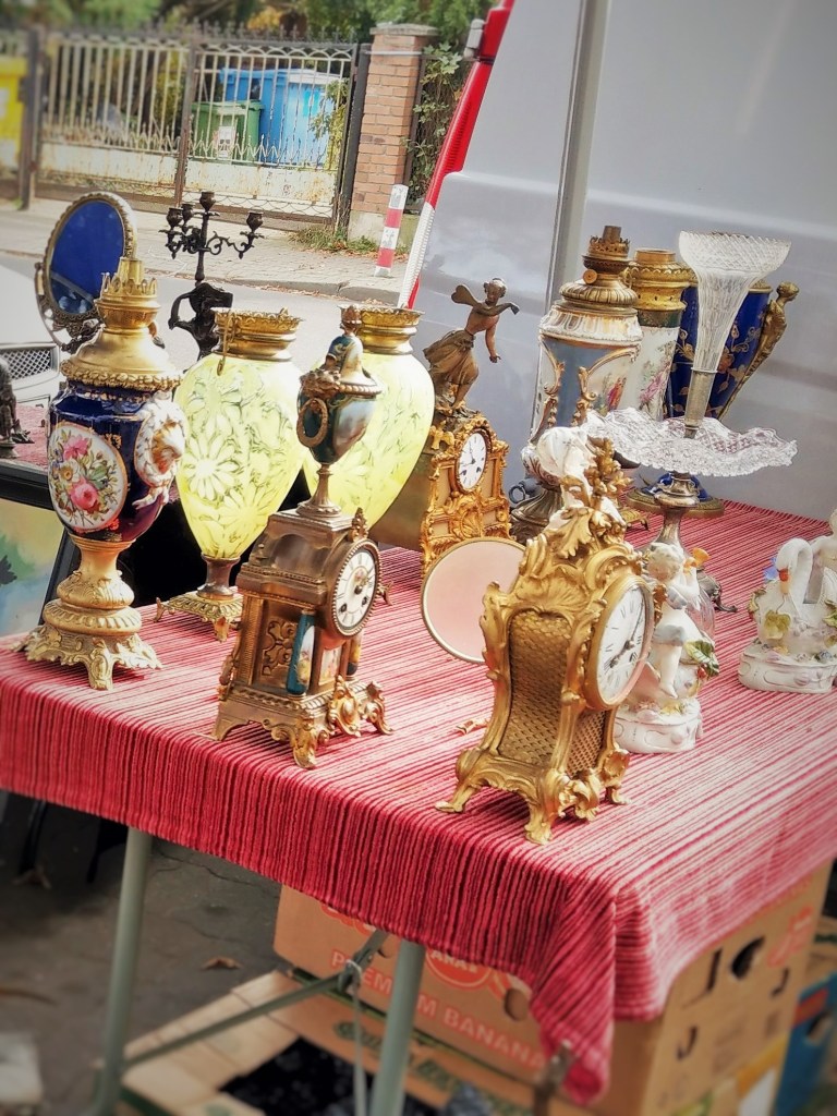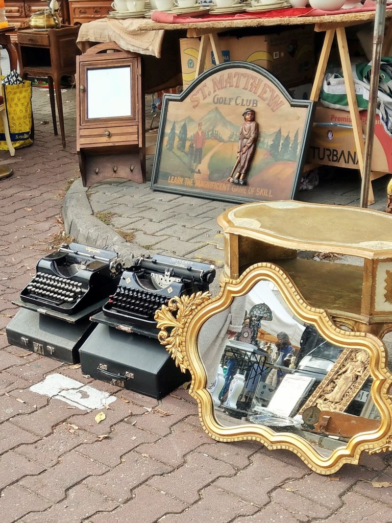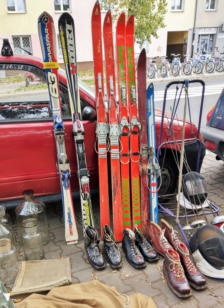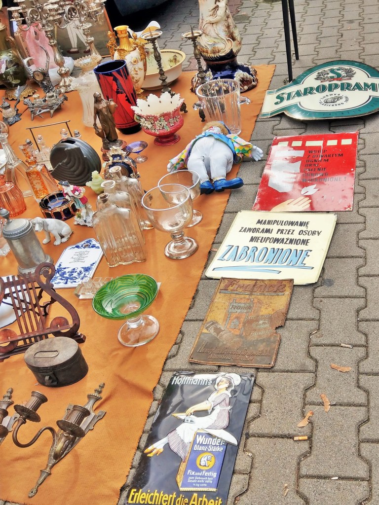 Rzeczy piękne, ładne, brzydkie, praktyczne i całkiem bezużyteczne, śmieszne, dziwne, zagadkowe, rozczulające, bardzo stare, niezbyt stare, jeszcze niedawno ostatni krzyk mody, rzeczy „o! mieliśmy kiedyś takie!” – wszystkie kiedyś do kogoś należały, a teraz stoją tu wśród tysiąca innych rzeczy, które też kiedyś do kogoś należały i wdzięczą się do przechodzących jak psy w schronisku. Podoba mi się egalitaryzm tego targowiska – autentyczne antyki stoją obok zwykłych śmietnikowych staroci, które koniec końców nie wylądowały najgorzej – mogły skończyć na wysypisku. Daje się jednak zauważyć, że uroda przedmiotów użytkowych kończy się mniej więcej w latach 60. Potem zaczął królować plastik, brzydota i niemal kompletny brak jakiegokolwiek wyróżnialnego stylu. Czy za kilkadziesiąt lat ktokolwiek będzie patrzył na dzisiejszego smartfona równie pożądliwie, jak ja dzisiaj na czarny ebonitowy telefon z tarczą? Będzie chciał położyć go sobie w przedpokoju jako ozdobę? Nie sądzę.