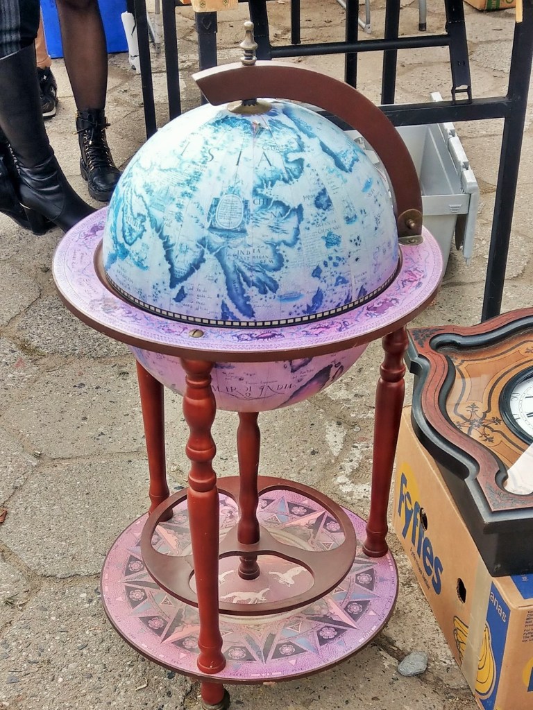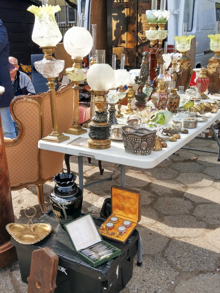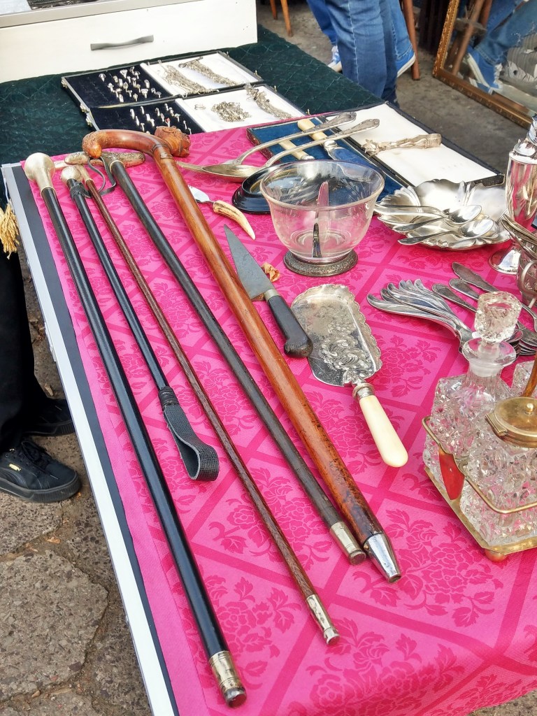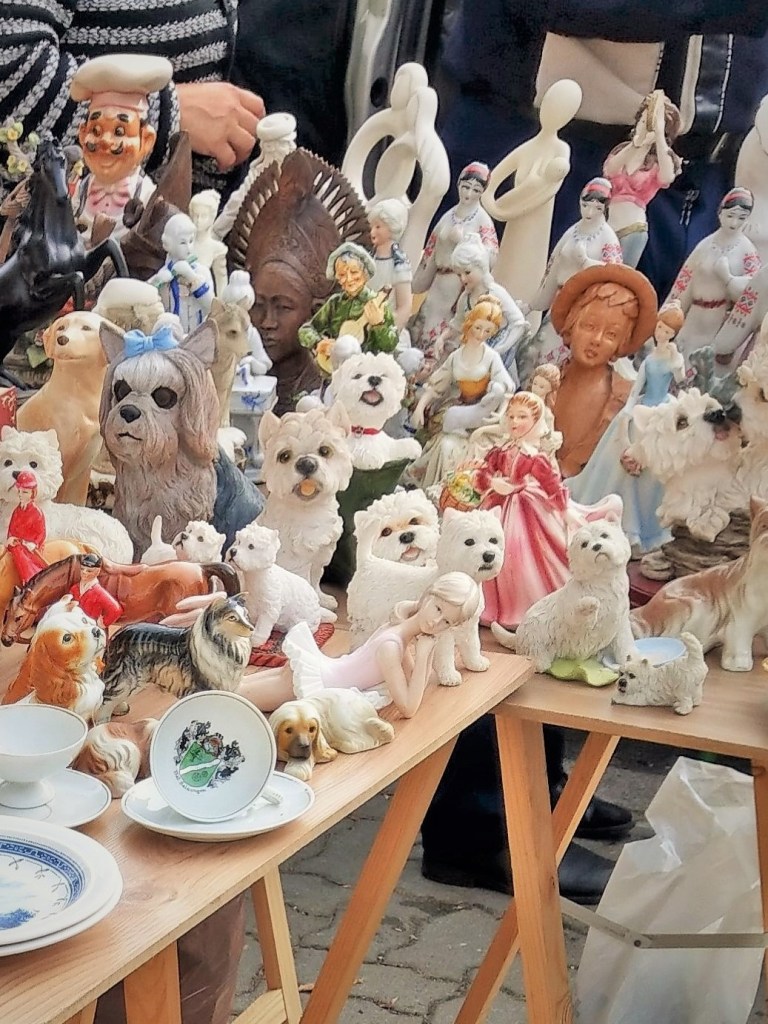 Rzeczy piękne, ładne, brzydkie, praktyczne i całkiem bezużyteczne, śmieszne, dziwne, zagadkowe, rozczulające, bardzo stare, niezbyt stare, jeszcze niedawno ostatni krzyk mody, rzeczy „o! mieliśmy kiedyś takie!” – wszystkie kiedyś do kogoś należały, a teraz stoją tu wśród tysiąca innych rzeczy, które też kiedyś do kogoś należały i wdzięczą się do przechodzących jak psy w schronisku. Podoba mi się egalitaryzm tego targowiska – autentyczne antyki stoją obok zwykłych śmietnikowych staroci, które koniec końców nie wylądowały najgorzej – mogły skończyć na wysypisku. Daje się jednak zauważyć, że uroda przedmiotów użytkowych kończy się mniej więcej w latach 60. Potem zaczął królować plastik, brzydota i niemal kompletny brak jakiegokolwiek wyróżnialnego stylu. Czy za kilkadziesiąt lat ktokolwiek będzie patrzył na dzisiejszego smartfona równie pożądliwie, jak ja dzisiaj na czarny ebonitowy telefon z tarczą? Będzie chciał położyć go sobie w przedpokoju jako ozdobę? Nie sądzę.