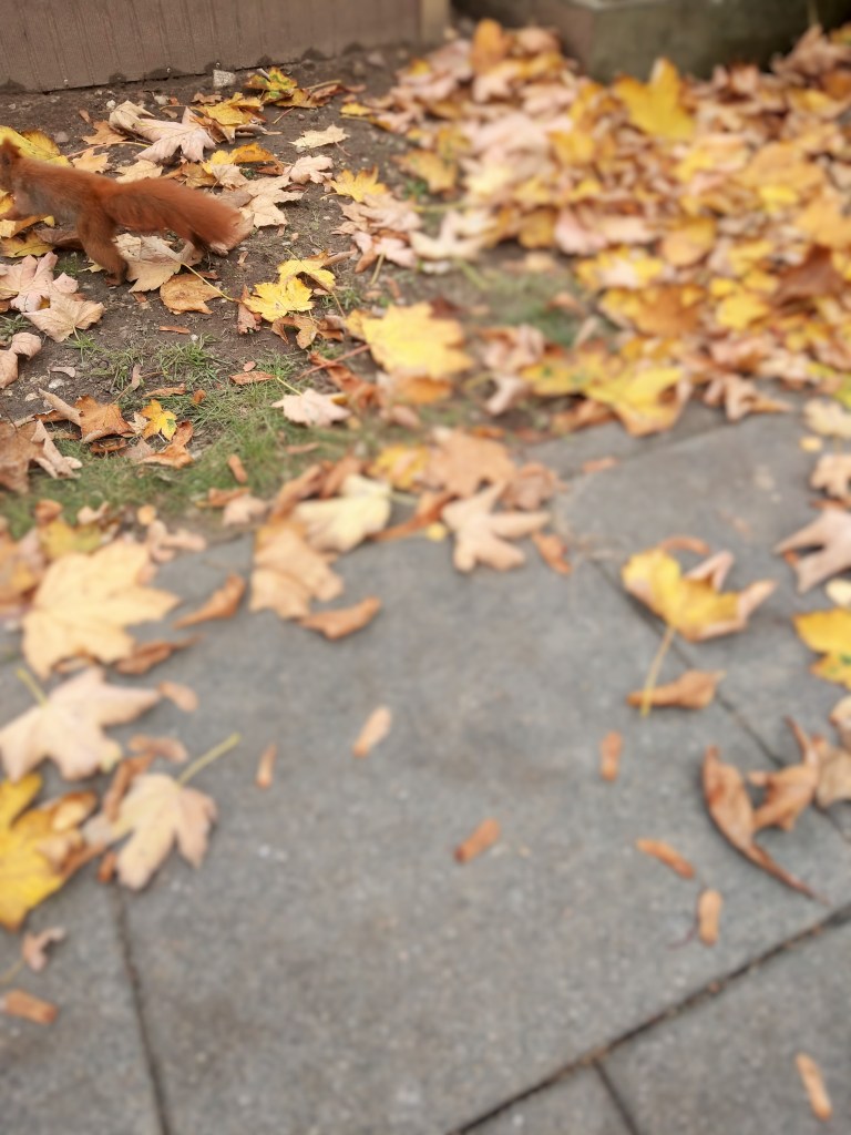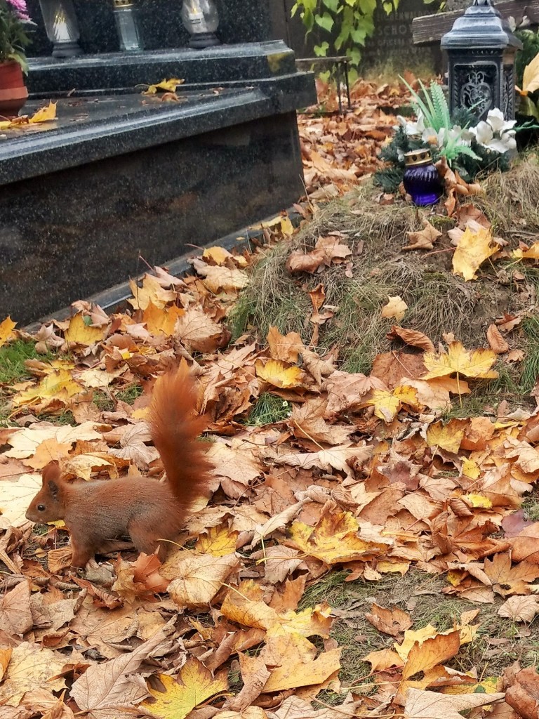 Wiewiórki też mają swoje święta – tzw. Święta Jesiennej Wyżerki, kiedy to dwunogi tłumnie odwiedzają ich ciche i spokojne zazwyczaj miejsce zamieszkania, przynosząc im całe garście orzechów, z których można zrobić zapasy na zimę. Biegają więc od jednego dwunoga do drugiego, przysiadają, patrzą wyczekująco, a gdy dostaną to, czego chcą – od razu lecą to zakopać.