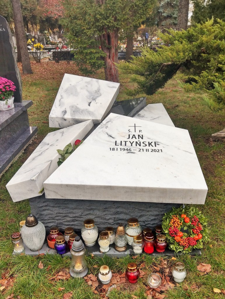 Grób, którego dwa lata temu jeszcze nie było, przypominający o okolicznościach tragicznej śmierci człowieka, który pięknie żył i pięknie (o ile w ogóle można tak powiedzieć – choć w tym przypadku myślę, że akurat można) umarł – ratując swojego psiego przyjaciela.