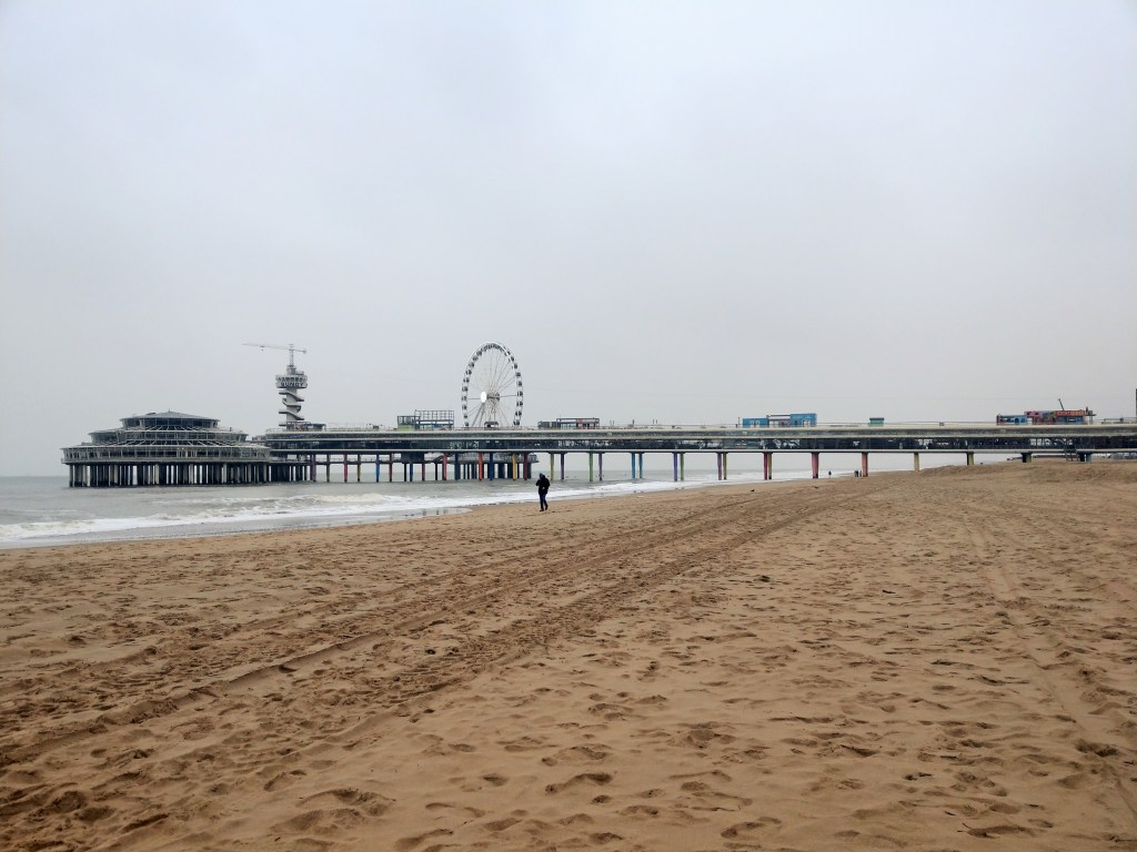 Na zdjęciu haskie molo De Pier w dzielnicy Scheveningen. Czego tu nie ma… Sklepy, knajpy, wieża widokowa do skoków na bungee, hotel, no i oczywiście diabelski młyn. Jeszcze niedawno popadało w ruinę i miano je rozebrać, jednak znalazł się ktoś przytomny, kto zobaczył potencjał tego miejsca. Dzisiaj jest to jedna z największych atrakcji nie tylko w Hadze, ale i w całej Holandii.