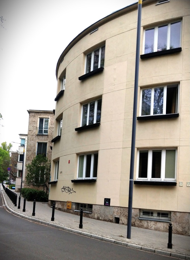 Jeszcze raz, bo już tu byłam, tyle że na górze. Dzisiaj na dole, na ostatnim powiślańskim spacerze. Napotkałam wycieczkę miastoznawczą, od przewodnika podsłuchałam, że architektura budynków z lat trzydziestych nawiązuje do stylu okrętowego. No nie wiem… Ale budynki ładne, eleganckie. Zastanawiałam się przez chwilę, czy by nie dołączyć kiedyś do takiej wycieczki, ale chyba jednak wolę wędrować i odkrywać Warszawę sama.