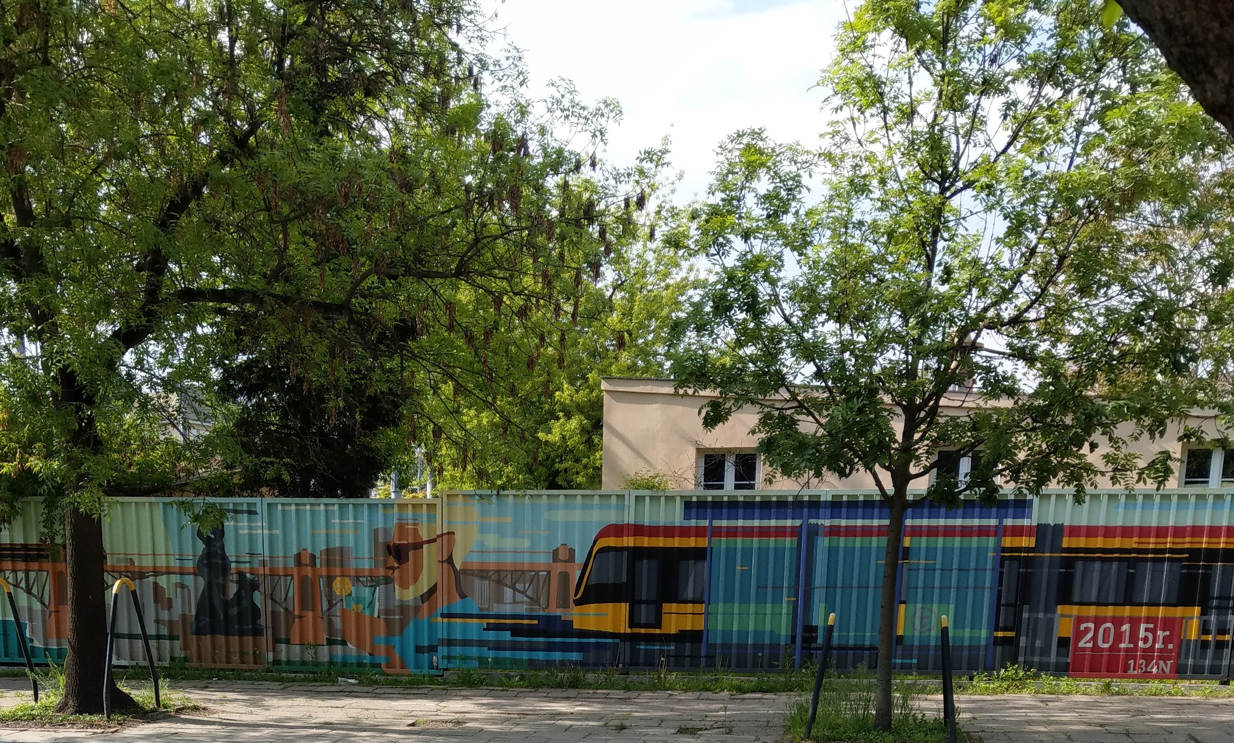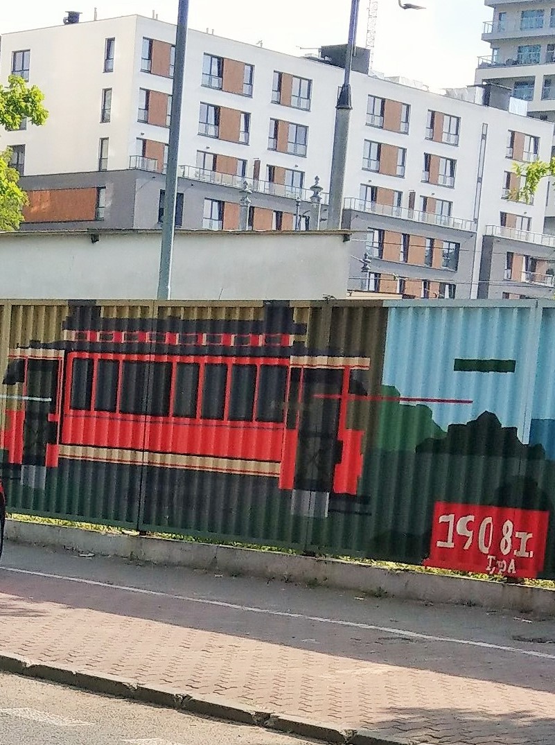 Na płocie zajezdni można prześledzić historię warszawskiego taboru tramwajowego. Moje ulubione to „13-tki” Konstalu – podobają mi się znacznie bardziej, niż dzisiejsze modele.