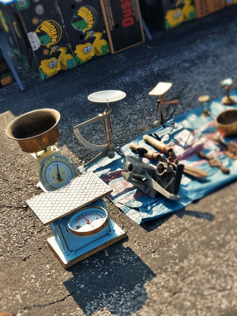 Nie pomyliliśmy się – był to pchli targ. Nie różnił się zbytnio od pruszkowskiego, pomijając język w starociach drukowanych – nawet sprzedający i kupujący byli w dużej części Polakami. Pochodzilim, pooglądalim. Waga na zdjęciu mnie zauroczyła, miała piękny korpus w kolorze „błękitu niemowlęcego”. Nic nie kupiwszy, poszliśmy jeszcze na zakupy do Billi nabyć czeski nabiał oraz jelenie i dzicze bobki tudzież kultowe Lentilky. I udaliśmy się przekroczyć granicę, w sensie jak najbardziej dosłownym, czyli dostojnie krocząc.