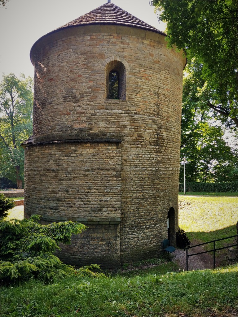 Średnica wieży to 12 m, zaś jej wnętrze użytkowe zaledwie 3, co oznacza grubość murów ponad 4 m.