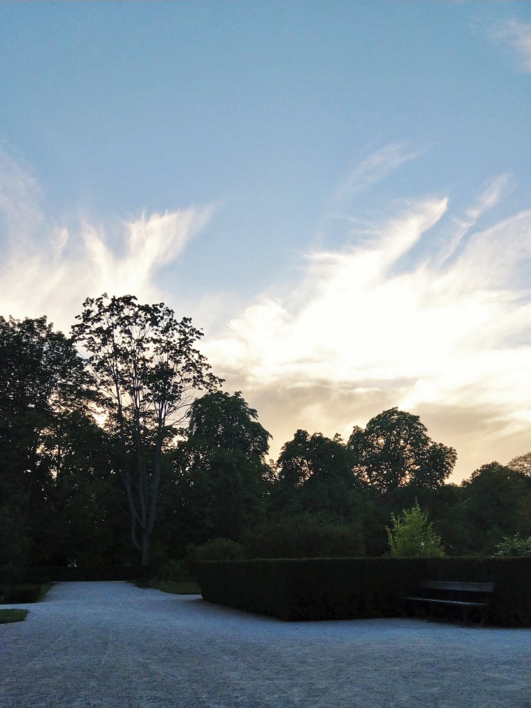 Ostatni spacer po Łazienkach – tym razem ogród geometryczny, ogród XIX wieku, ogród włoski i ogród królewski – o zmierzchu. O zmierzchu, ponieważ z okazji zbliżającej się defilady wojaków Warszawa od wczoraj była kompletnie zablokowana i dojazd do królewskich ogrodów zajął mi prawie 1,5 godziny (normalnie 0,5).