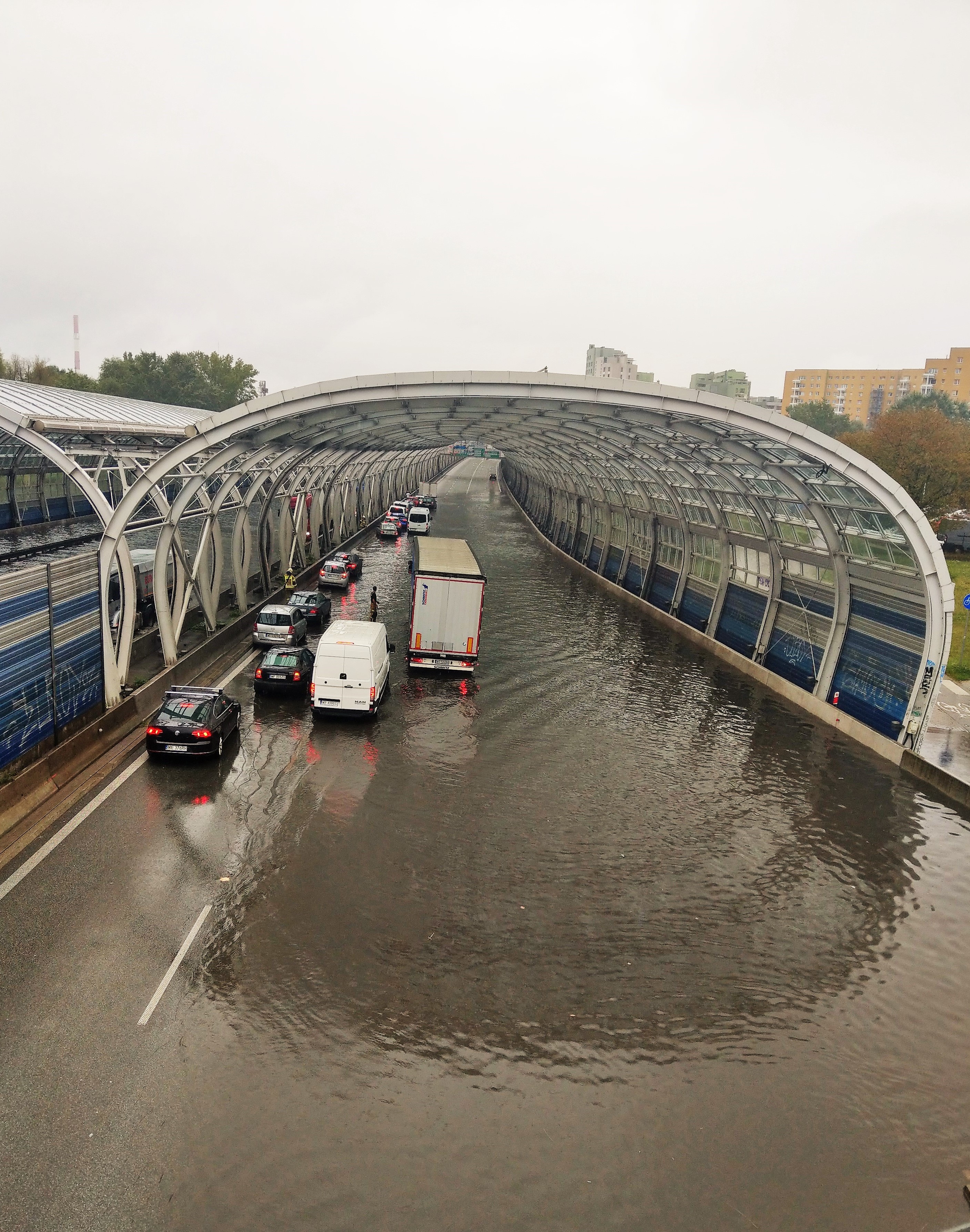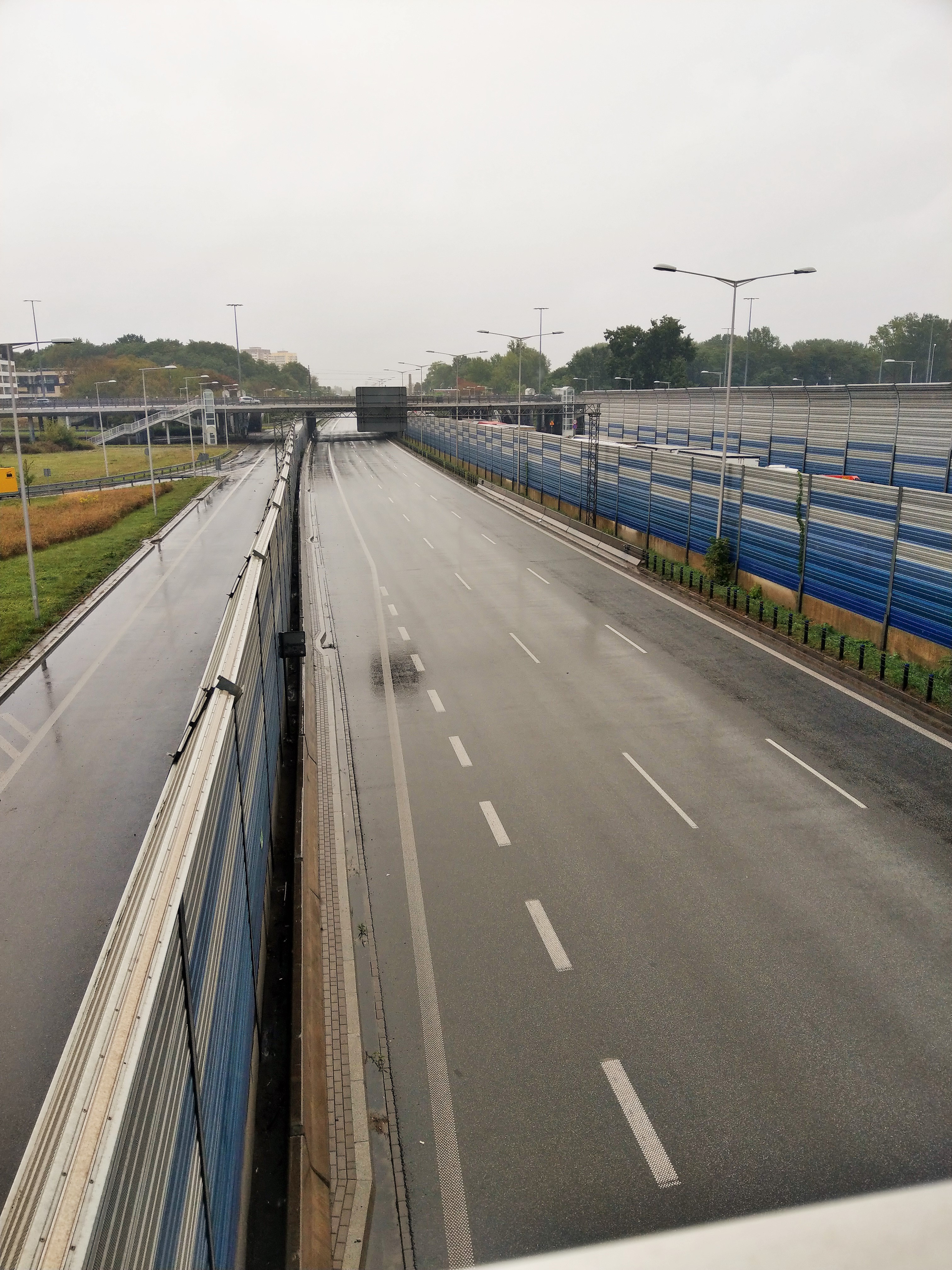 Moja dość zaciszna osiedlowa uliczka zamieniła się dzisiaj w Via Baltica, czyli puszczono nią objazd drogi ekspresowej S8, biegnącej nieopodal. Pod oknami korek w obie strony. A droga S8 wyglądała dzisiaj tak: