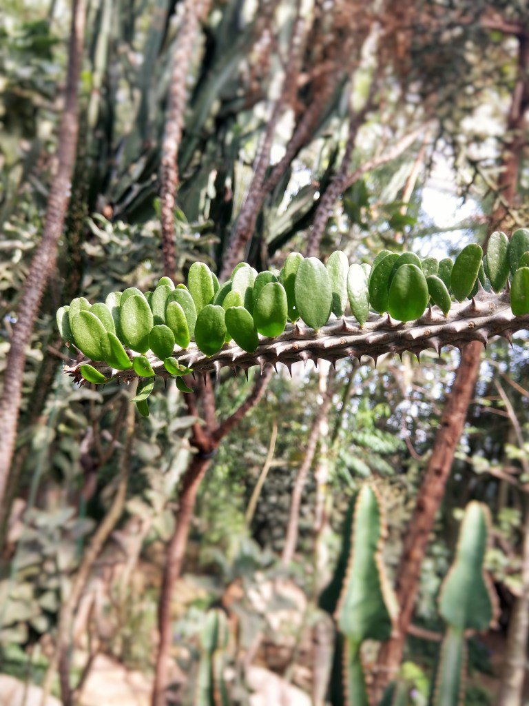 Drzewo z rodziny wilczomleczowatych, kolce zawierają trujący sok, który może spowodować ślepotę. Dojrzałe owoce pękają z ŁOSKOTEM, wyrzucając nasiona na znaczne odległości.