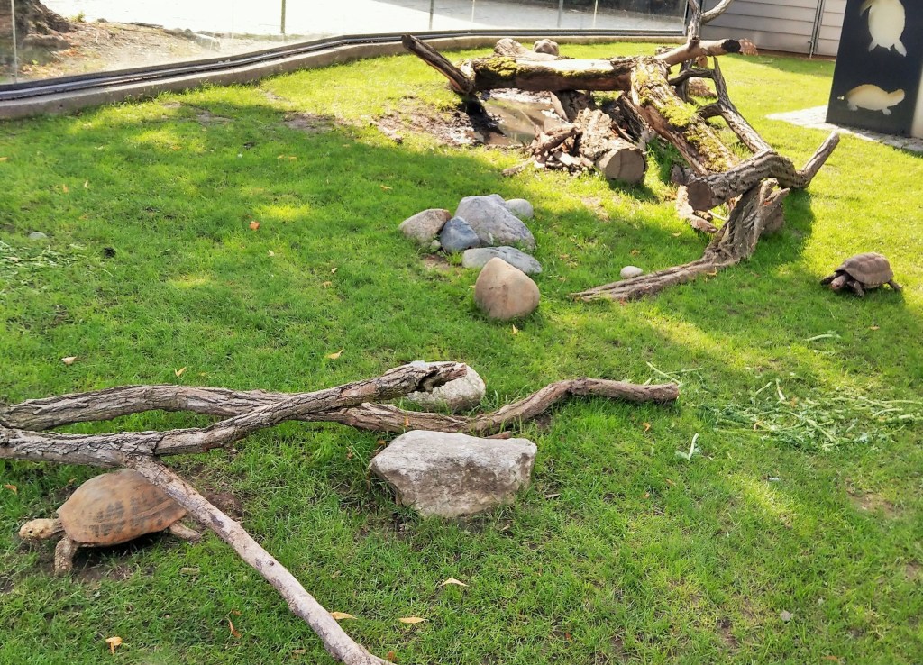 Na jednym z żółwich wybiegów znajduje się oryginalny domek dla nich – w kształcie (i rozmiarach) Samotnego George’a.