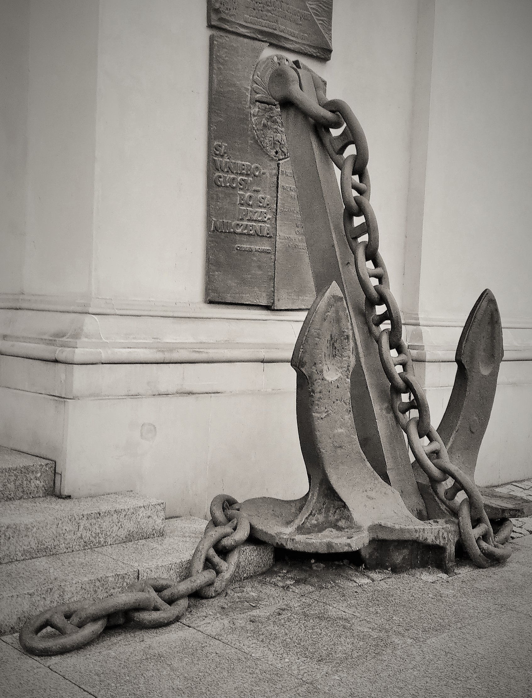 Kotwica i śmigło przed Katedrą Polową Wojska Polskiego.