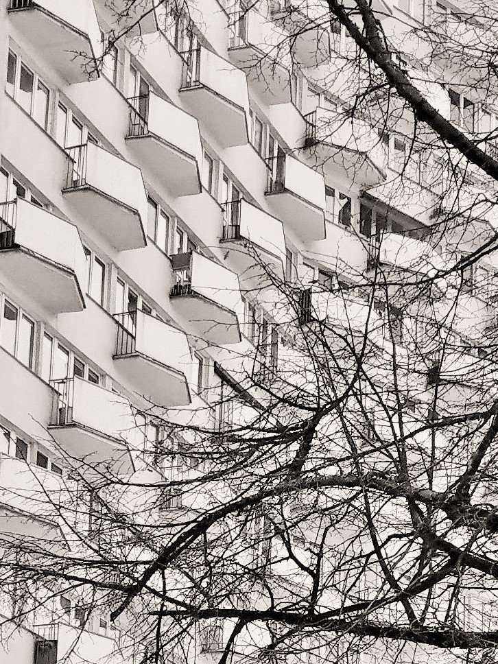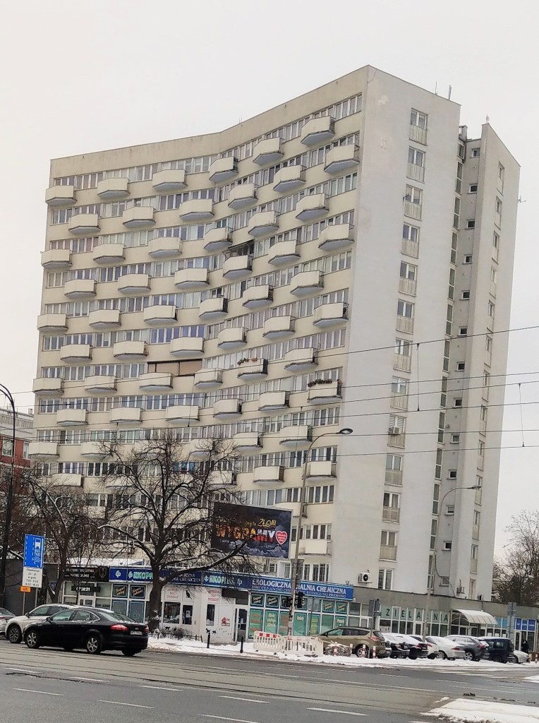 Z nowszej architektury wyróżnia się budynek przy Grójeckiej projektu Jana Zdanowicza z 1962 r., tzw. „X”. Podobne stoją na Solcu i pisałam o nich wczesną wiosną ubiegłego roku (i wspominałam o tym na Ochocie). I oto on: