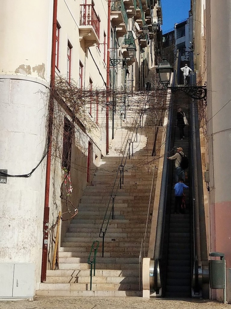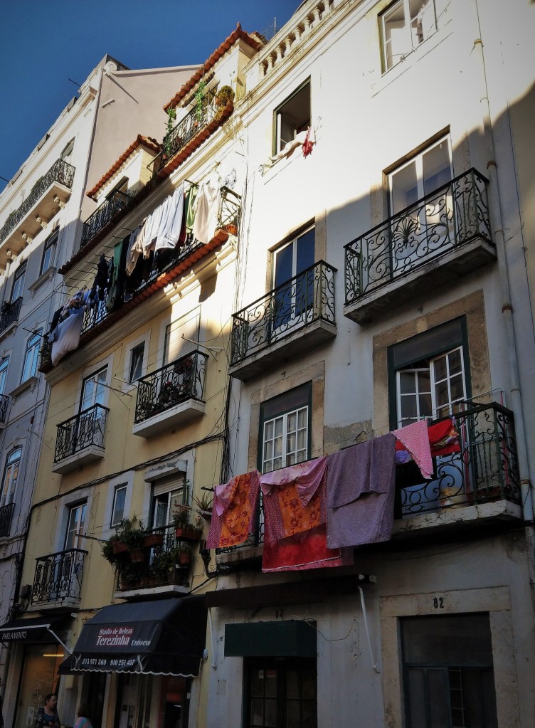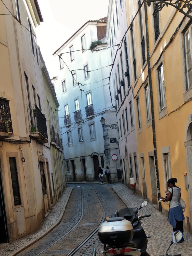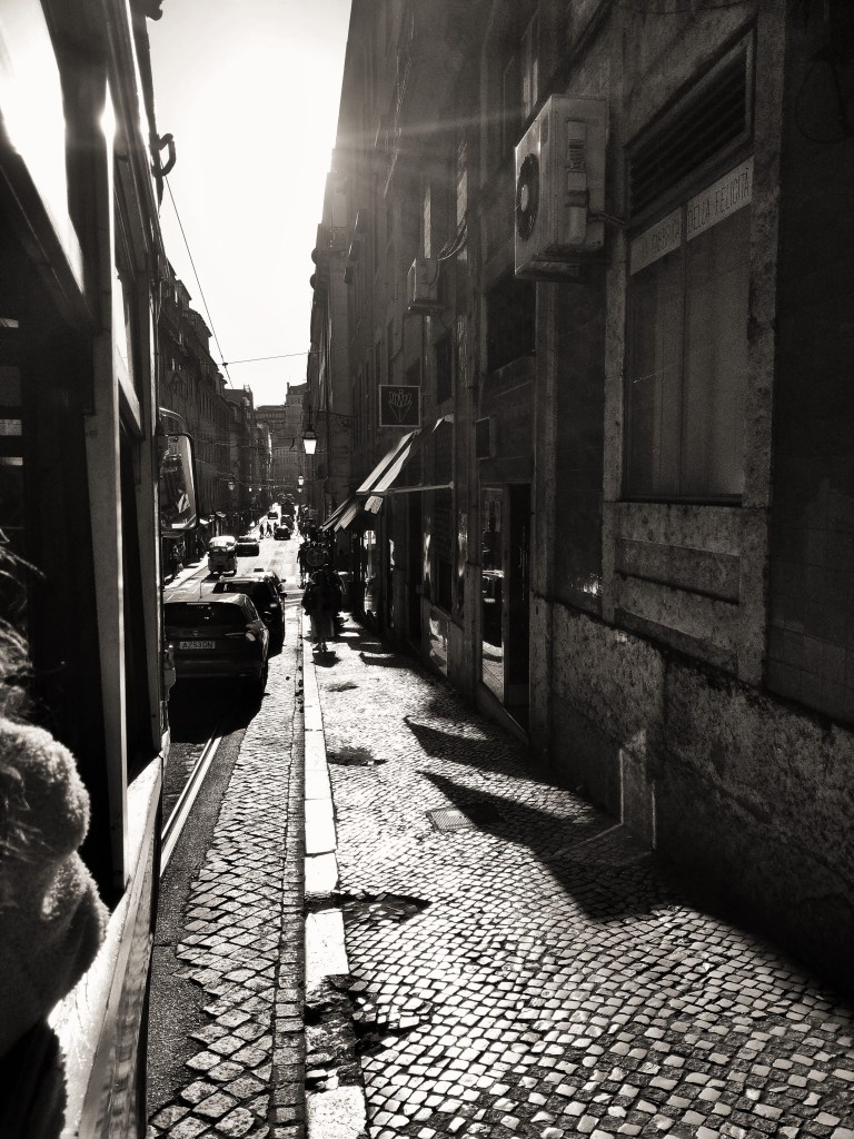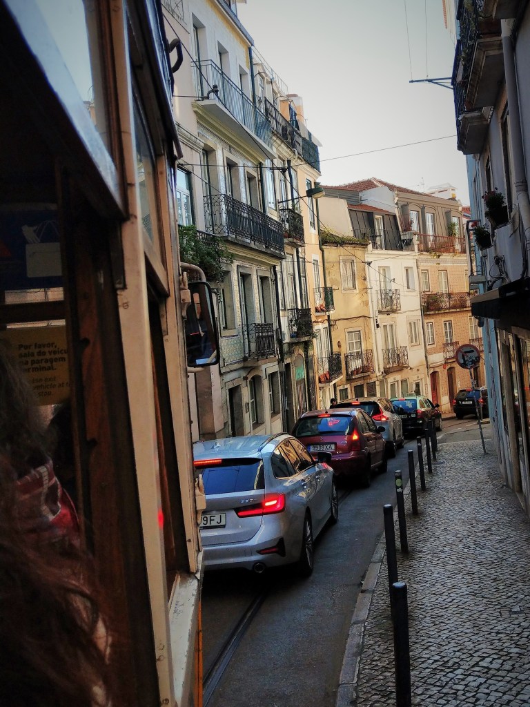 W 1755 r. Lizbonę nawiedziło potężne trzęsienie ziemi (9 w skali Richtera) oraz tsunami, które doszczętnie zrujnowały miasto. Odbudowane budynki były pierwszymi na świecie, które zbudowano z myślą o ochronie antysejsmicznej. Gdy się chodzi wąskimi uliczkami, raczej trudno się tego domyślić. Ale nietrudno się nimi zachwycić. Najlepszym sposobem, by je obejrzeć, jest wycieczka słynnym tramwajem nr 28. Przejechałyśmy całą trasę. Miejscami jest tak wąsko, że przechodnie muszą niemal przywierać do ścian domów, by tramwaj o nich nie zahaczył.