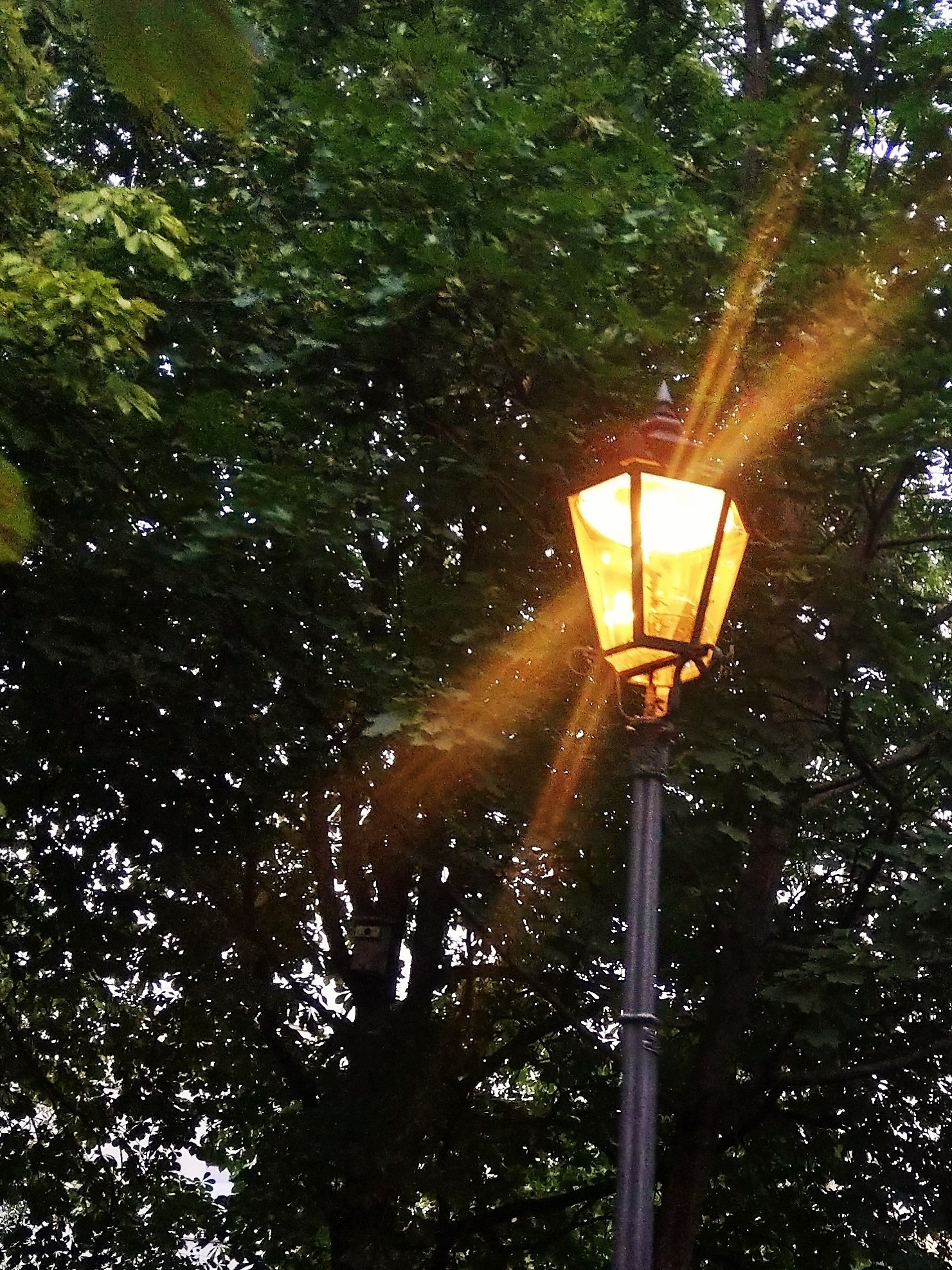 Pierwsze latarnie gazowe połączone z gazownią na Ludnej pojawiły się w Warszawie w 1856 r. 92 latarnie zapłonęły na Książęcej, Nowym Świecie i Krakowskim Przedmieściu. Na początku XX w. były już ich tysiące, choć w 1904 r. pojawiły się już pierwsze latarnie elektryczne. Początkowo latarnie zapalali latarnicy. Postęp nastąpił w 1927 r., kiedy to w gazowni na Ludnej wprowadzono urządzenie do zdalnego ich zapalania. Po wojnie liczba latarni gazowych stopniowo malała i ulegała dewastacji. Dzisiaj w stolicy działają 174 latarnie gazowe, najbardziej znane to te na Agrykoli przy Łazienkach. Pozostałe znajdują się na Starym Żoliborzu, Bielanach i Sadybie. Te sadybiańskie to historyczny model z 1856 r., z charakterystycznymi liśćmi akantu; postawiono je w latach 30. i do 2008 r. zapalali je latarnicy. W tymże 2008 rozpoczął się projekt ich rewitalizacji, obejmujący m.in. wymianę mechanizmu zapalającego ze sterowanego ręcznie na automatyczny, zmierzchowy – trochę szkoda, chętnie poszłabym śladem latarnika i popatrzyła, jak się je zapala. Za to miasto-ogród może się teraz poszczycić największą liczbą latarni gazowych w Warszawie – w 2012 r. było ich w sumie 68. Wyznaczono też ścieżkę spacerową „Szlakiem latarni gazowych”. [za: um.warszawa.pl i miasto-ogrod-sadyba.pl].