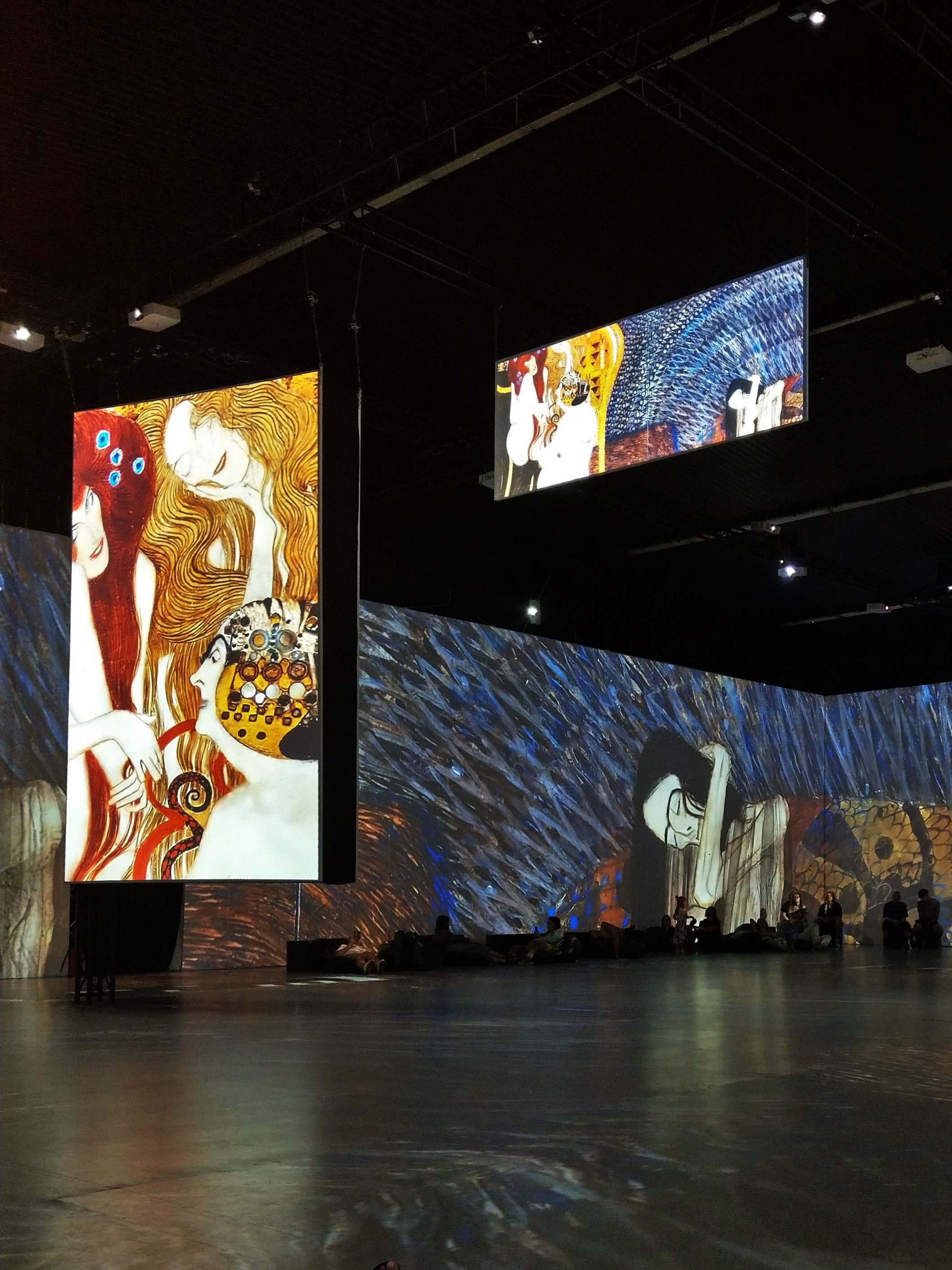 Sceptycznie podchodzę do tego typu przedsięwzięć, uważam, że obrazy wielkich artystów bronią się same, niepotrzebne im technologiczne fajerwerki, ale muszę przyznać, że akurat obrazy Klimta przedstawione w tej formie robią wrażenie. Poza tym, mieszka się w wielkim mieście, to trza korzystać. No i bardzo lubię Klimta. Wystawa odnosiła sukcesy w wielu europejskich i światowych stolicach, a teraz przywędrowała pod naszą strzechę, konkretnie na warszawski Kamionek, do Soho Art Center.