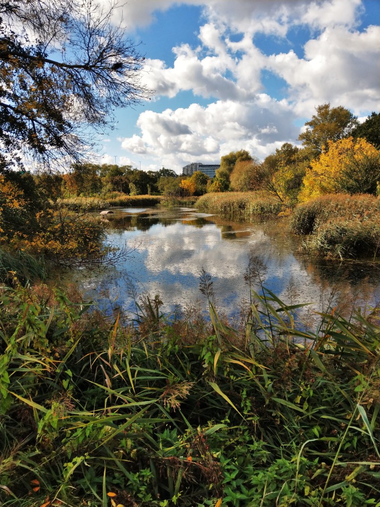 Rzeka to może za dużo powiedziane, raczej potok, rzeka w wersji mini, niemniej jednak, skoro dotarłam na Służew, to z okazji dzisiejszego święta i dużo ładniejszej niż wczoraj pogody znowu udałam się w tę rzeczną dolinę.
