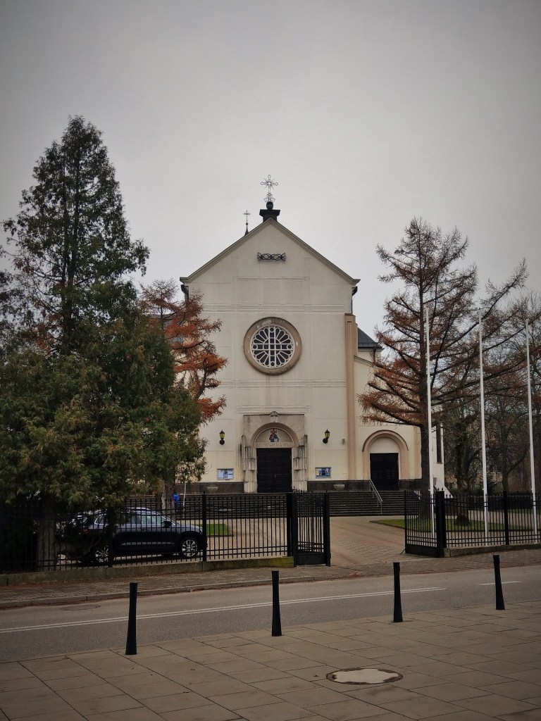 Trochę modernistyczny, trochę neoromański (budowę rozpoczęto przed wojną, zakończono w latach 50. według zmienionego projektu). Ufundowano go jako wotum dziękczynne za wygraną bitwę warszawską 1920 r.