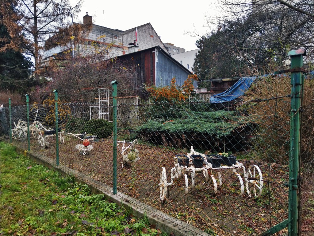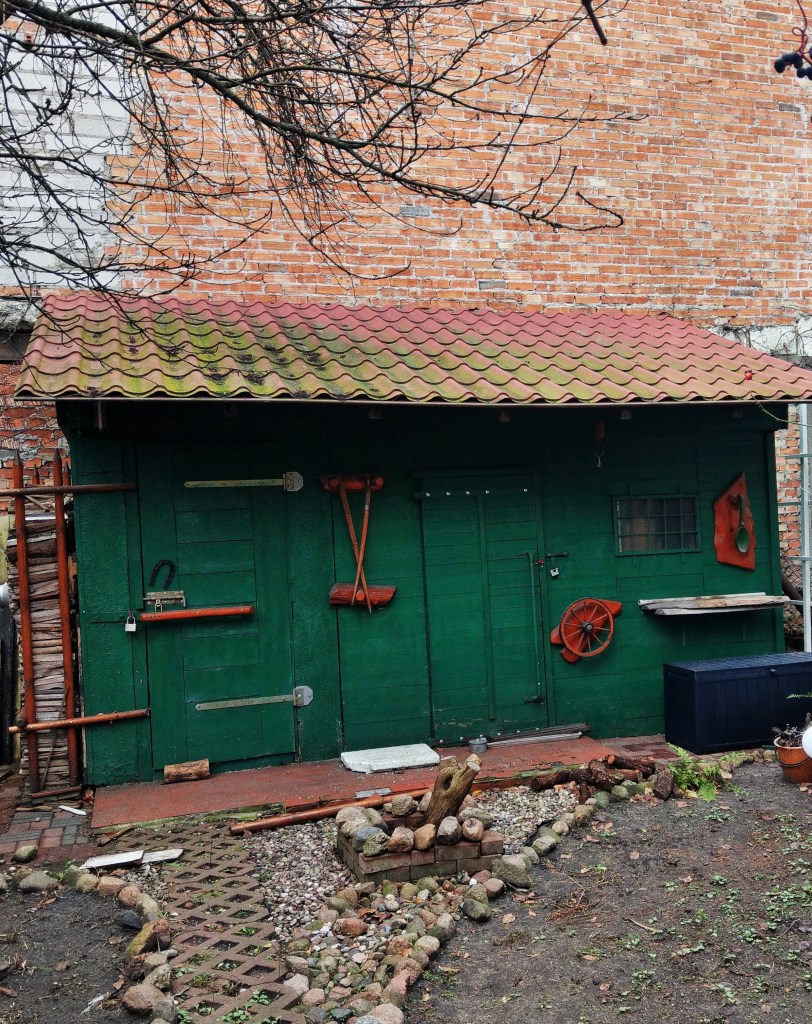 Zamiast ogrodowych krasnali – stare maszyny rolnicze. Nazw i przeznaczenia niestety nie pomnę (coś do wykopywania ziemniaków zdaje się :)). Funkcjonują dzisiaj jako plac zabaw dla kotów gospodarza.
