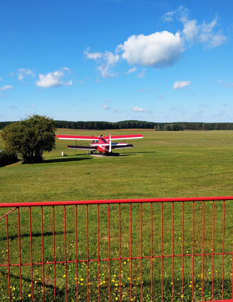 Przylep ma nie tylko stację kolejową, ale i lotnisko. Działa od 1957 r. i ma tu jedną ze swoich baz słynna grupa akrobacyjna „Żelazny”. Niestety w nocy mocno padało, murawa namokła i żadne samoloty tego dnia nie latały.
