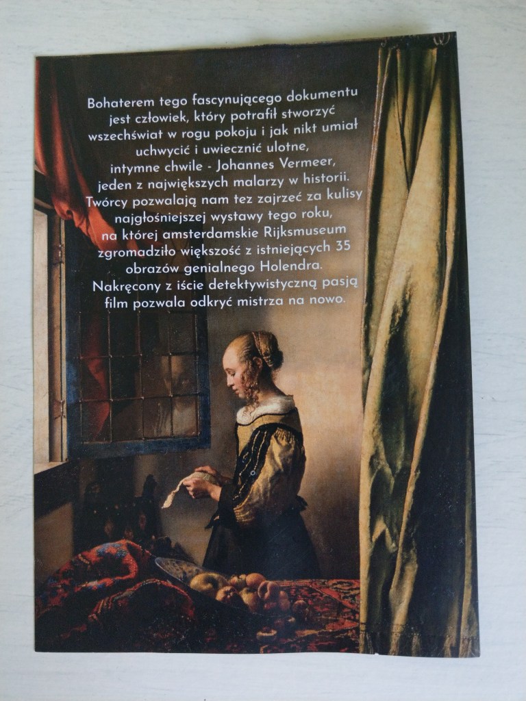 …ma możliwość, ale też pecha, jak to miało miejsce w moim przypadku, gdy to podczas wizyty w haskim muzeum Mauritshuis przy okazji służbowej delegacji okazało się, że jego najsłynniejsze dzieło akurat pojechało na wystawę do Amsterdamu. No więc dzisiaj obejrzałam tę wystawę, zaprezentowaną w filmie „Nowy Vermeer. Wystawa wszechczasów”. (Bilety na nią wyprzedały się w 24 godziny). Przyjrzałam się więc najsłynniejszemu dziełu holenderskiego malarza, „Dziewczynie z perłą”, za pośrednictwem kamer, dowiadując się pewnie znacznie więcej, niż dowiedziałabym się na miejscu w Hadze. Vermeer namalował ponadto ok. 36 innych obrazów, w filmie szczegółowo omówiono kilkanaście z nich, w tym także te mniej znane. Królowały w nich kobiety, różnych stanów i profesji, malowane zazwyczaj w domowym zaciszu, w szczególności przy oknie. Emanuje z nich spokój i intymność, a oglądając je z komentarzem historyków sztuki mogłam zwrócić uwagę na detale, które inaczej pewnie uszłyby mojej uwadze.