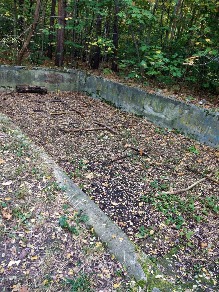 Pozostałości po urządzeniach natryskowych obiektu półkolonijnego wybudowanego w 1939 r. Według niektórych podczas wojny stał się on częścią KL Warschau i odbywały się tu egzekucje, ale traktować to raczej trzeba jako coś w rodzaju miejskiej legendy niż historyczne fakty. Zwolennicy teorii wiedzą jednak swoje i postawili pamiątkowy kamień. (A także urządzają „historyczne” wycieczki, czego sama dzisiaj byłam świadkiem).