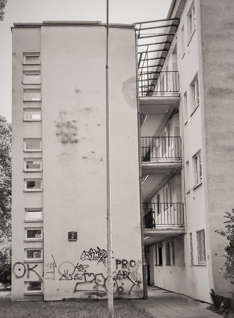 Między Dąbrowskiego a Madalińskiego taka to mniej więcej zabudowa, ale mnie najbardziej podoba się to, co na murach.