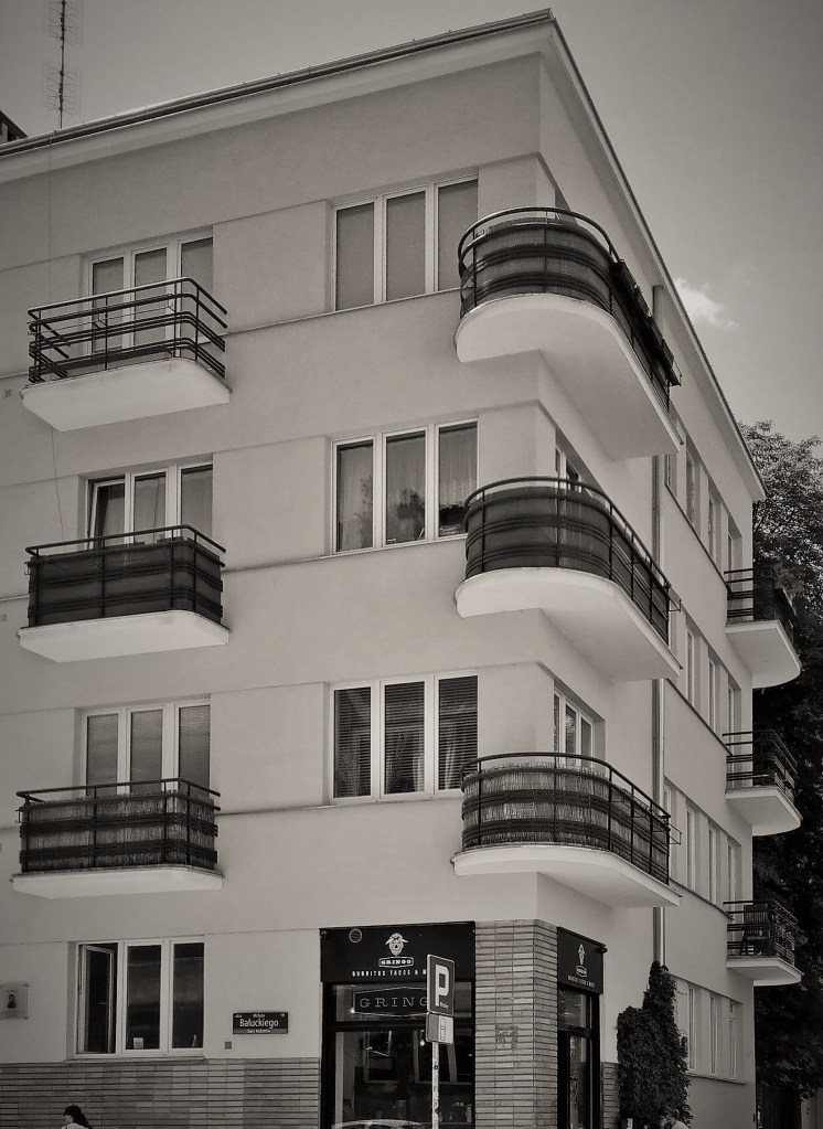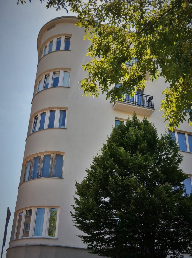 Na Starym Mokotowie bardziej niż tutejsze wille podobają mi się tutejsze modernistyczne bloki. Ale to nic dziwnego, jestem przecież blokersem. Chętnie bym w którymś z nich zamieszkała, niestety są cenowo poza moim zasięgiem. To jedne z droższych miejscówek w Warszawie. Mogę sobie tylko powspominać, że przez jakiś czas mieszkałam w pobliżu, albo pójść na spacer pozadzierać głowę.