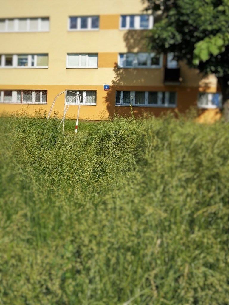 A tutaj trochę mniej zadbany trawnik przy ul. Wrzeciono.